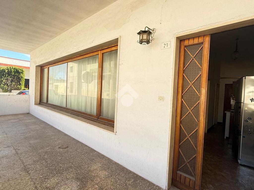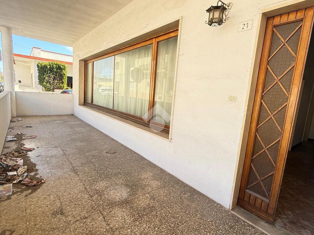RACALE: appartamento indipendente al piano terra , di circa 230 mq, composto da cucina abitabile con camino, soggiorno doppio, corridoio, tre camere da letto matrimoniali ,un bagno completamente ristrutturato, ampia veranda. Giardino.