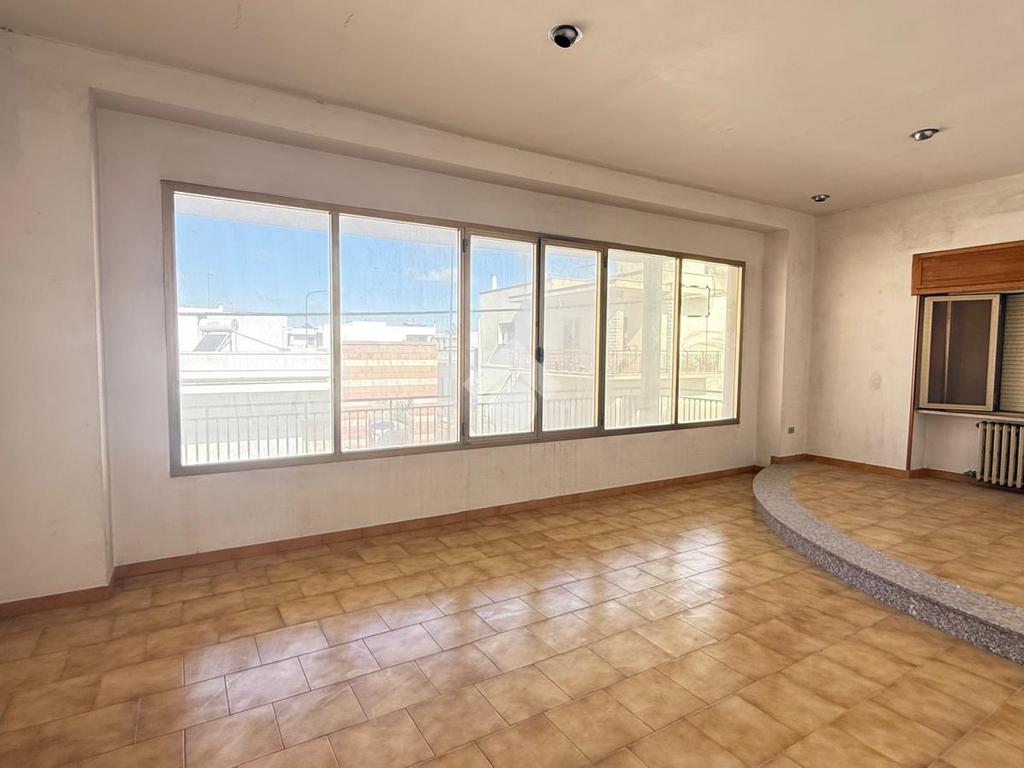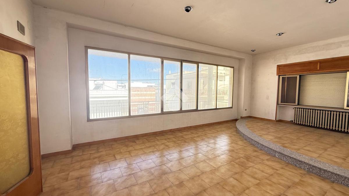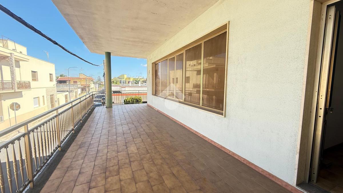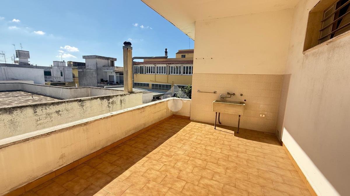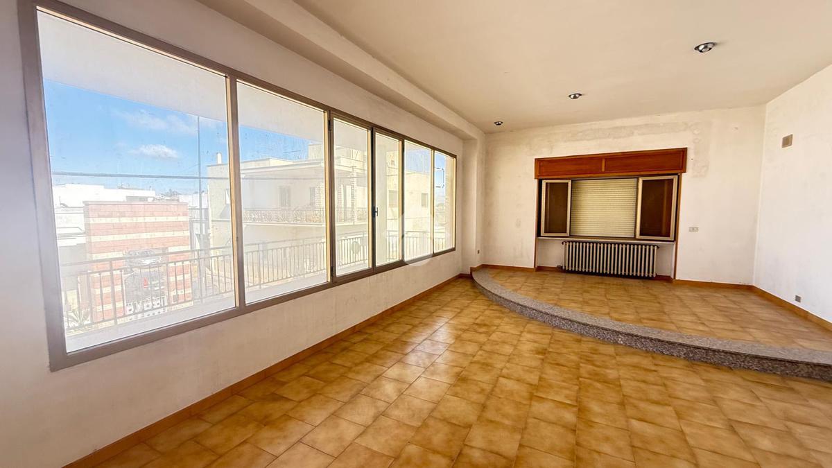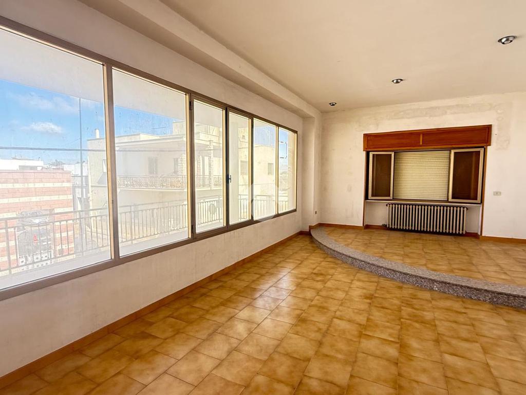RACALE: appartamento da ristrutturare al piano primo, di circa 230 mq, con ingresso e garage al piano terra, e montacarichi, composto da un soggiorno doppio con un ampio balcone, cucina abitabile, tre camere da letto matrimoniali e un bagno. Lastrico solare di proprietà.
