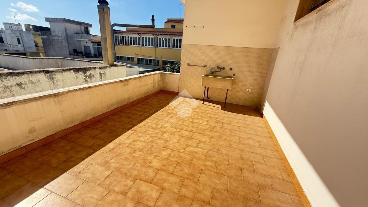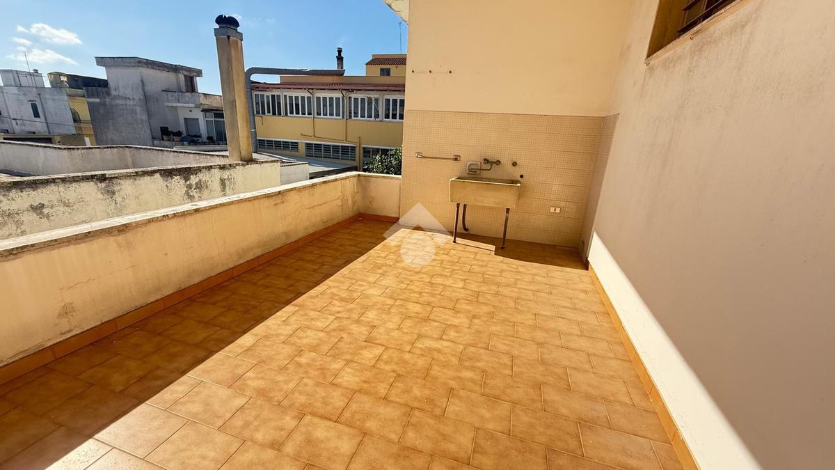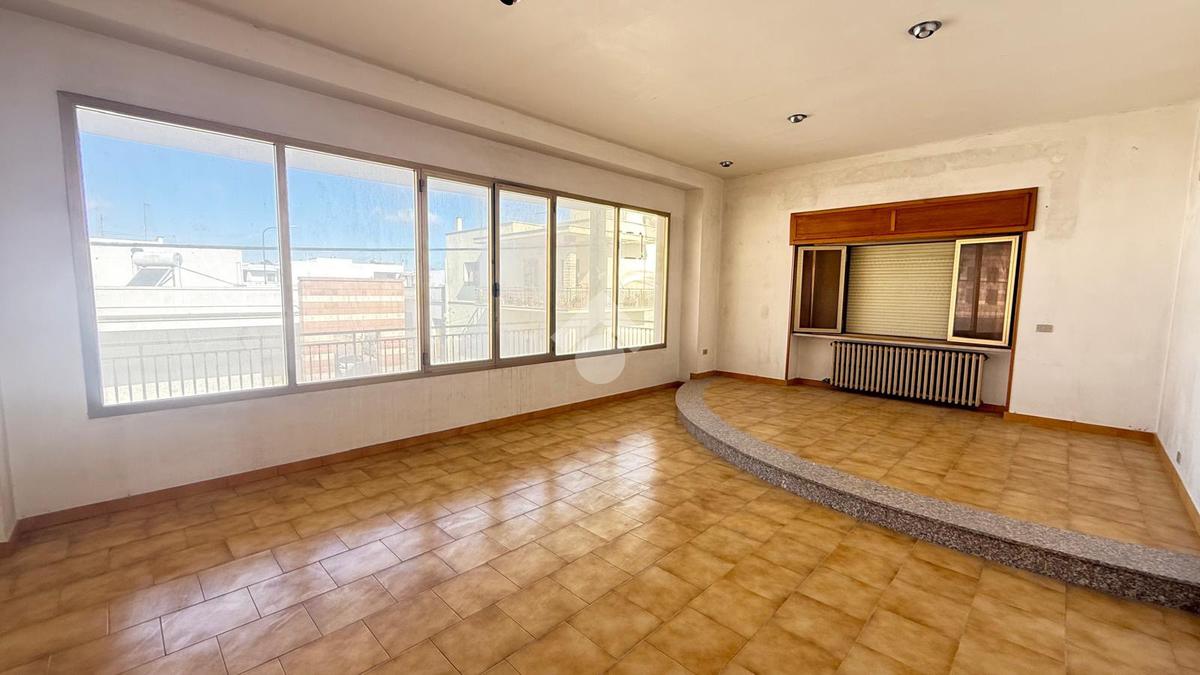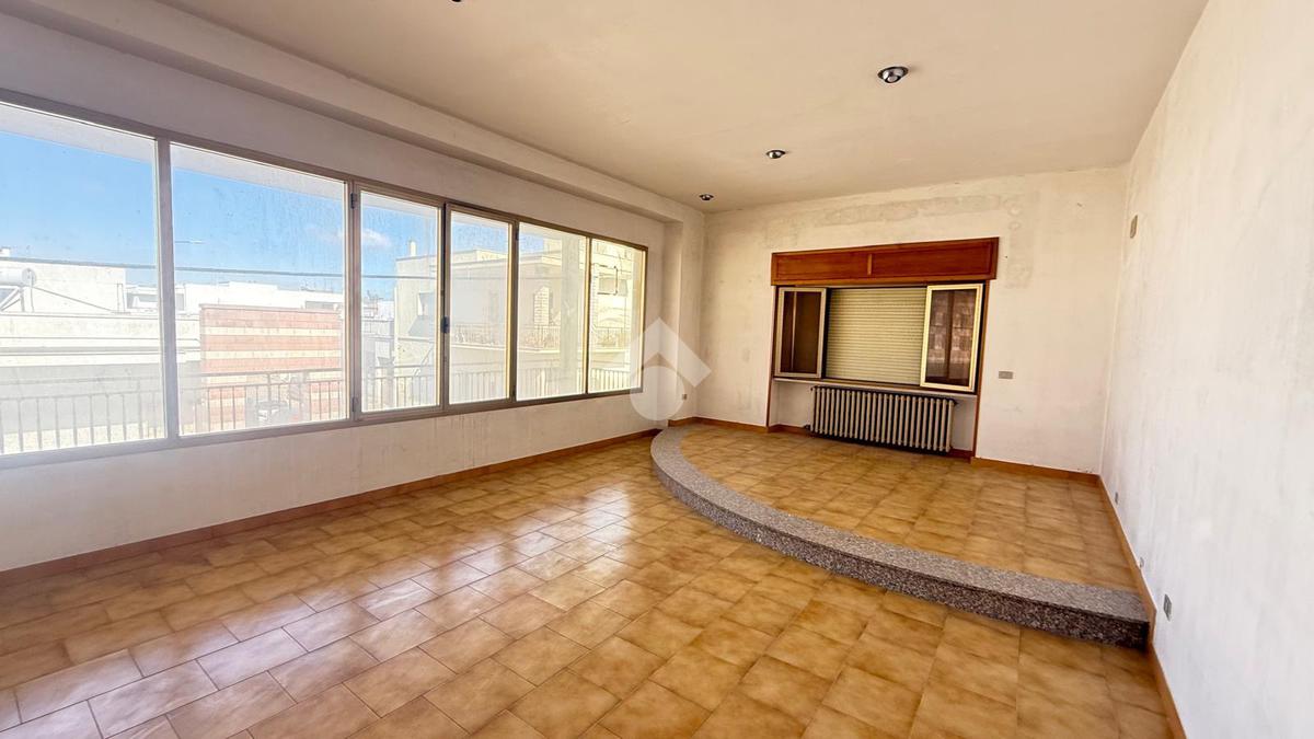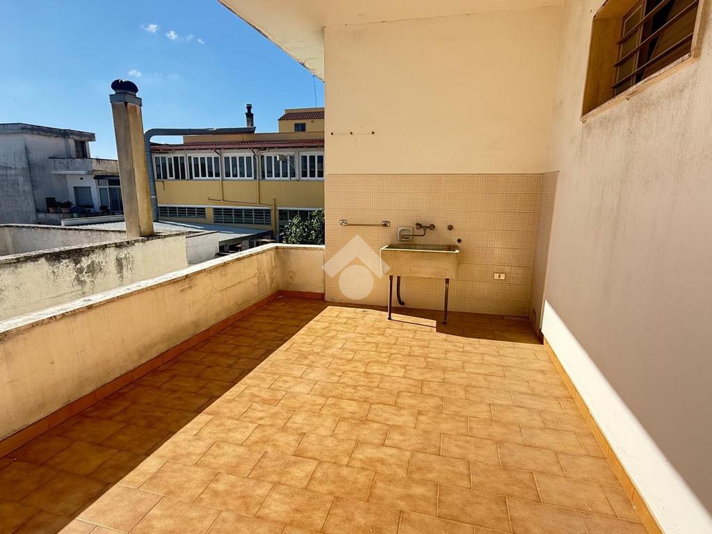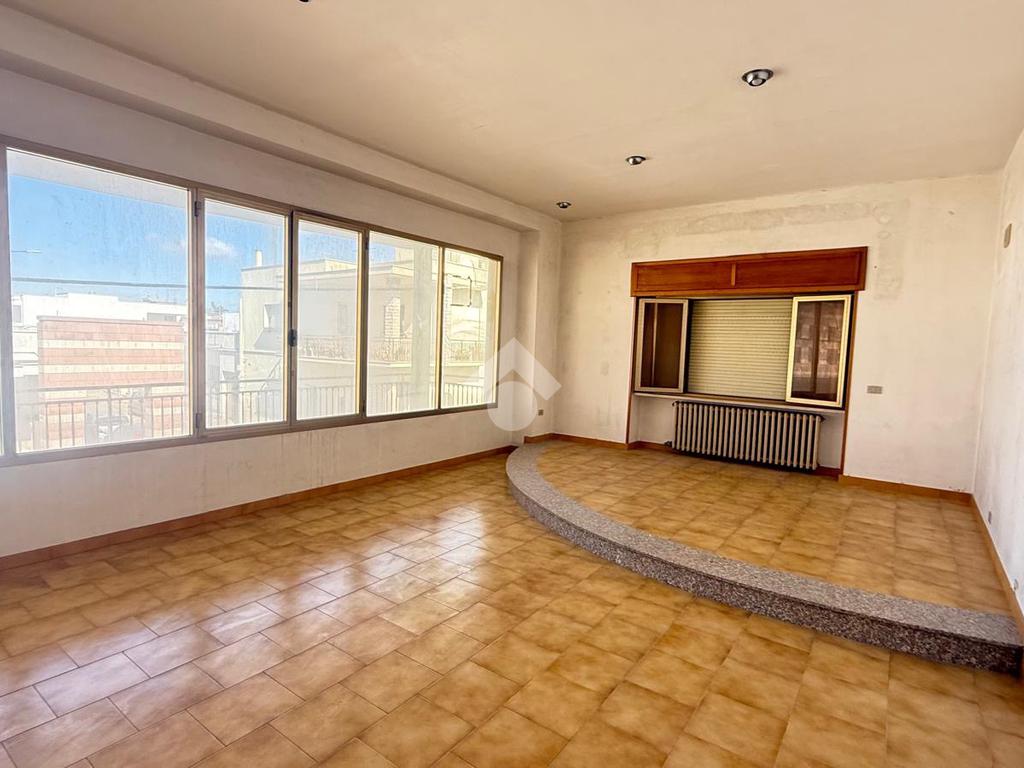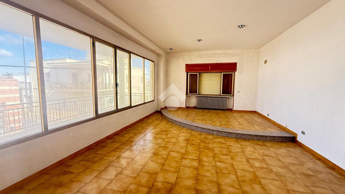 RACALE: appartamento da ristrutturare al piano primo, di circa 230 mq, con ingresso e garage al piano terra, e montacarichi, composto da un soggiorno doppio con un ampio balcone, cucina abitabile, tre camere da letto matrimoniali e un bagno. Lastrico solare di proprietà.