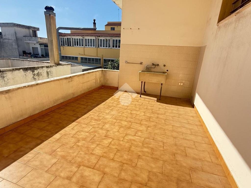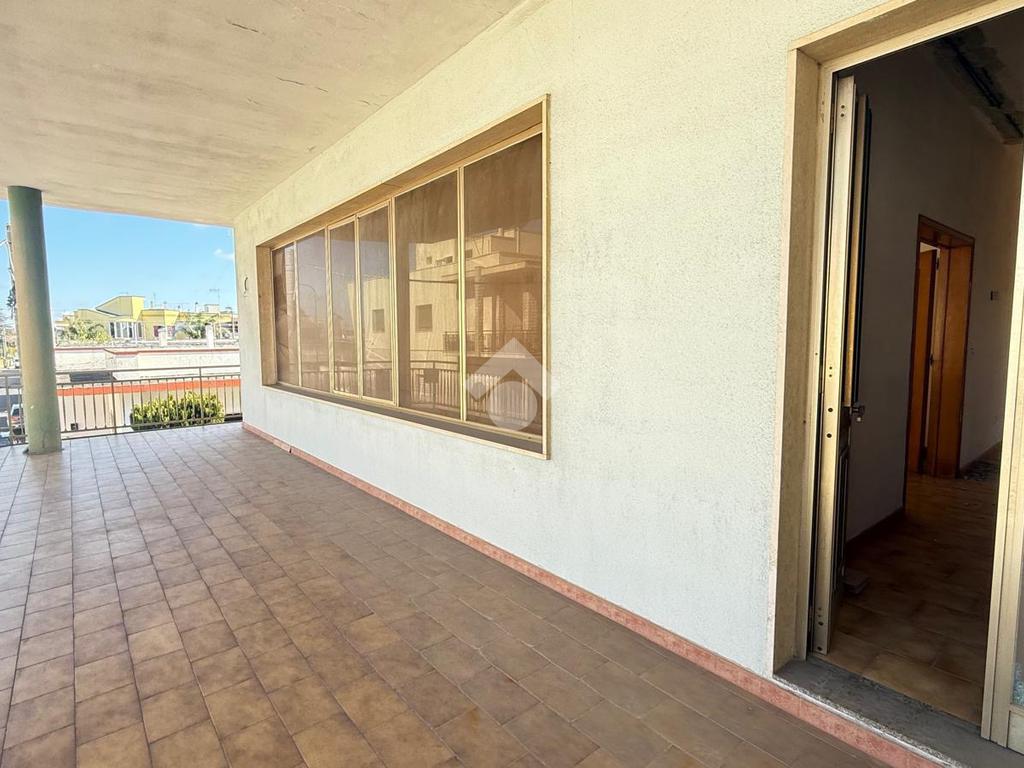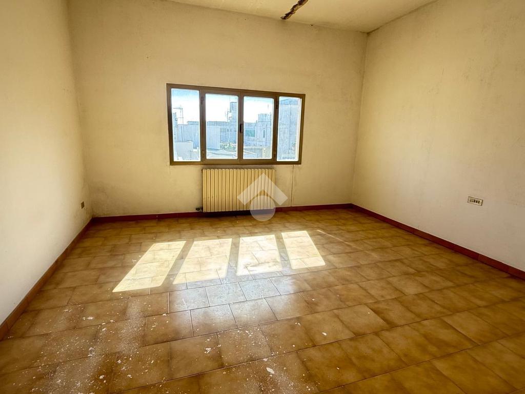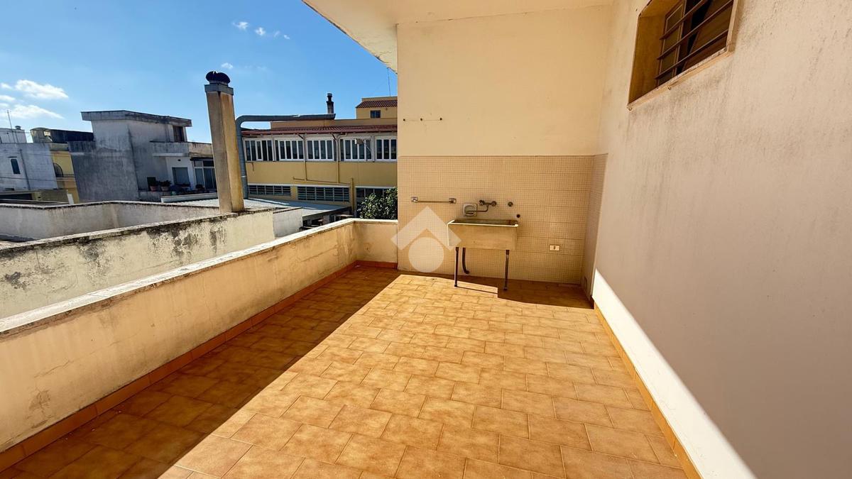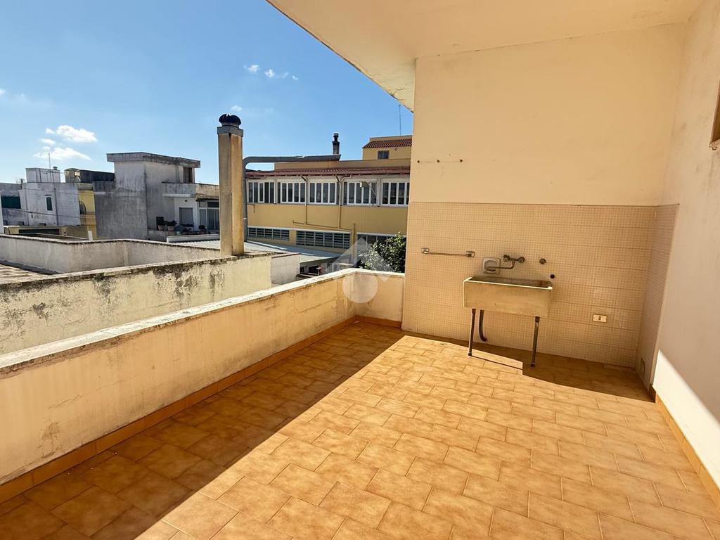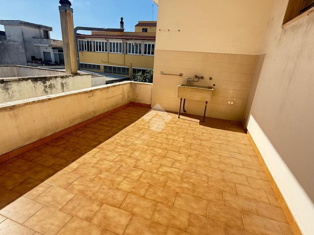 RACALE: appartamento da ristrutturare al piano primo, di circa 230 mq, con ingresso e garage al piano terra, e montacarichi, composto da un soggiorno doppio con un ampio balcone, cucina abitabile, tre camere da letto matrimoniali e un bagno. Lastrico solare di proprietà.