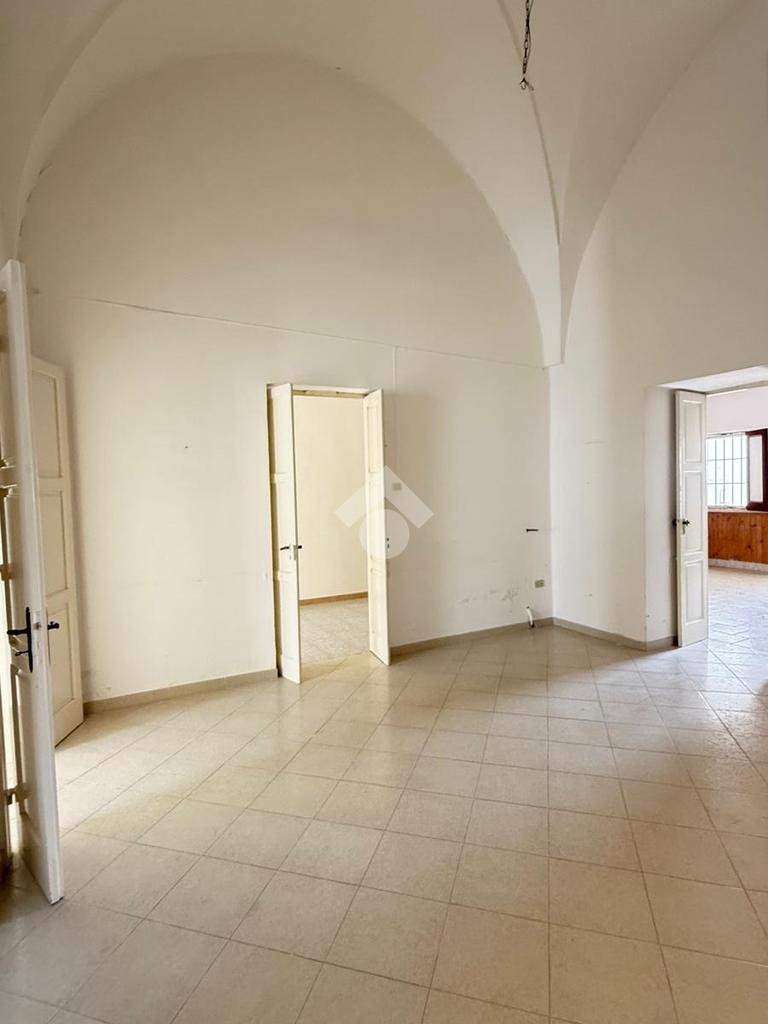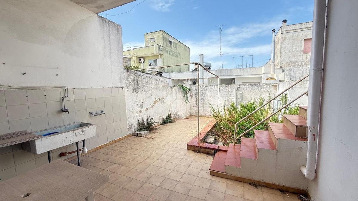 RACALE: casa indipendente, composta da ingresso, due camere da letto matrimoniale con volte a stella, corridoio, ampia zona living, un bagno, giardino retrostante e spazio esterno antistante, lastrico solare con un ulteriore vano.