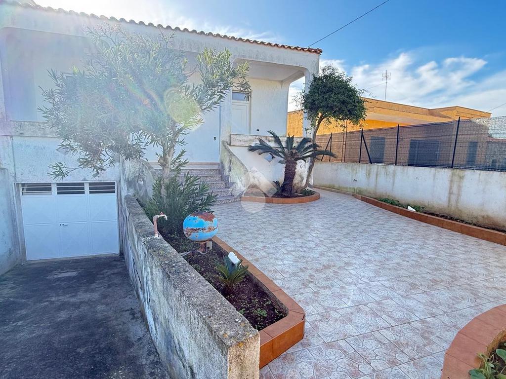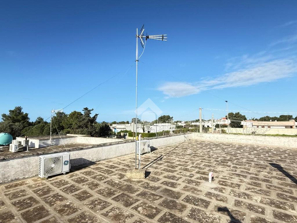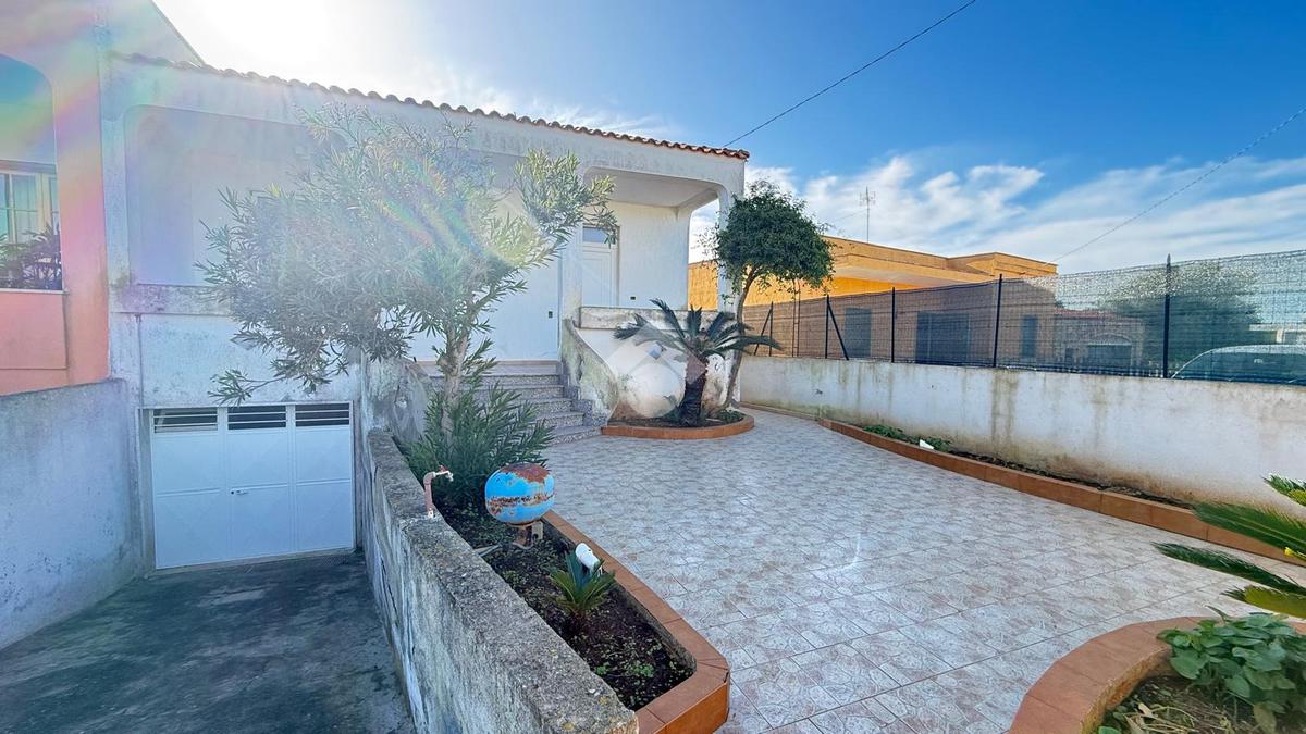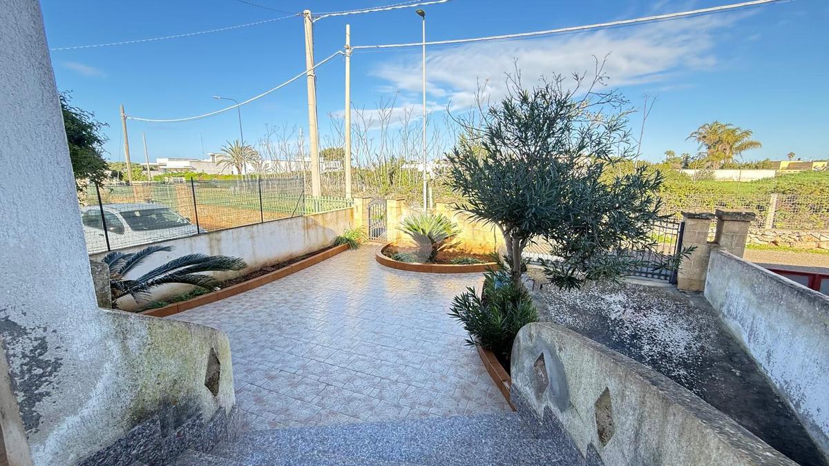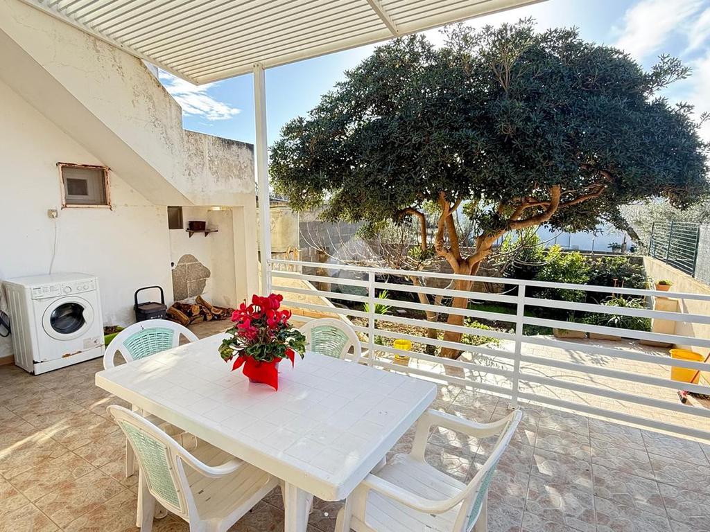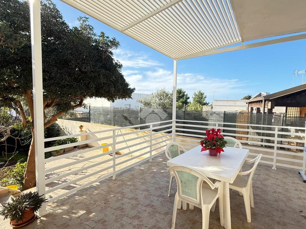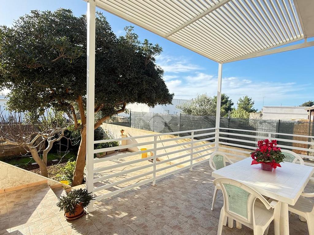 MARINA DI TORRE SUDA: a 280 mt dal mare villa a schiera angolare, con terrazzo e giardino antistante e retrostante e spazio esterno latistante che permette il passaggio nella parte posteriore dall'esterno, composta da ingresso, soggiorno doppio, cucina abitabile, cucinotto e ripostiglio, due camere da letto matrimoniali e un bagno. Scala esterna che porta al lastrico solare con un splendida vista mare. L'immobile recentemente ha subito alcuni lavori di ristrutturazione, come gli infissi, l'arredamento, il bagno che è completamente nuovo, stufa a legna, climatizzatori. Al Piano seminterrato box auto di circa 36mq. E'predisposto anche la tinteggiatura esterna che sarà a carico e cura dei proprietari. La villa viene venduta completamente arredata.