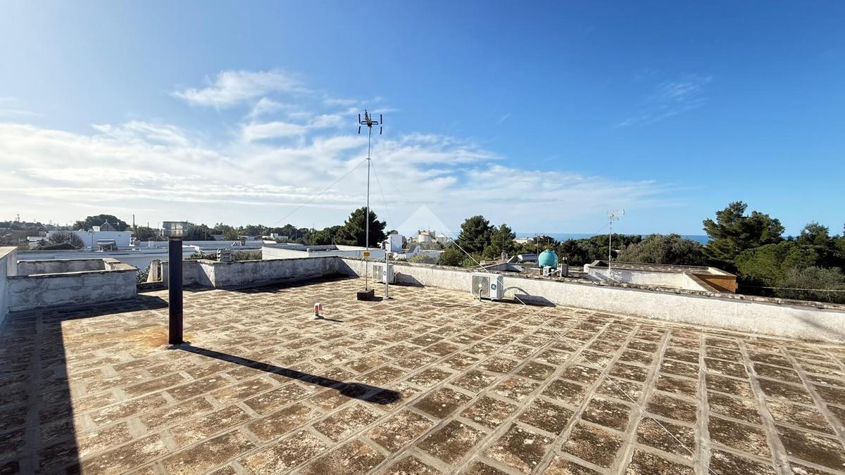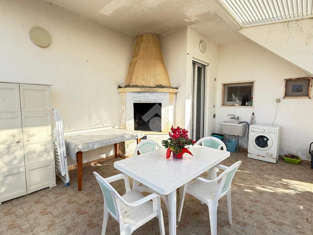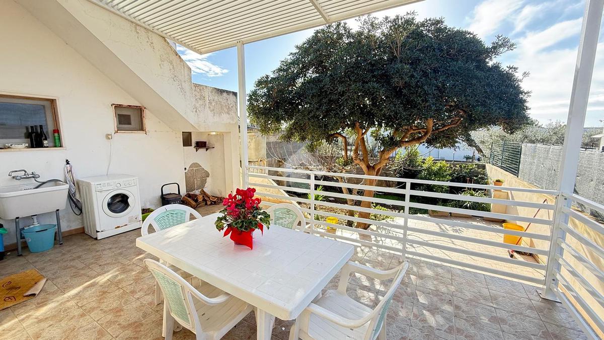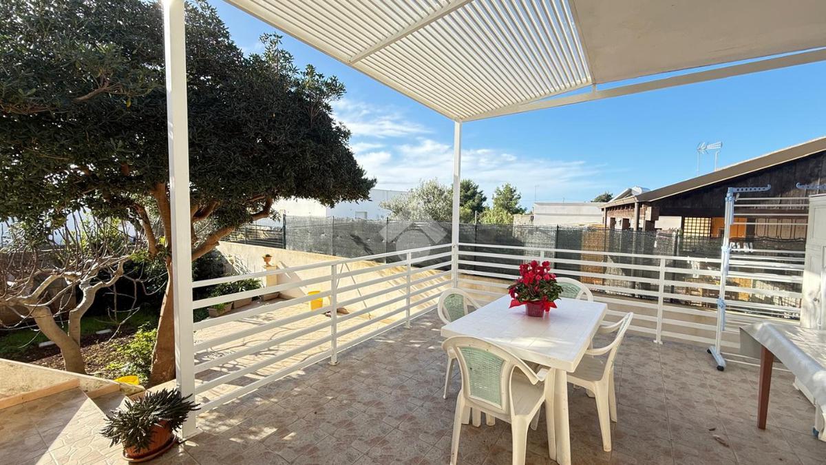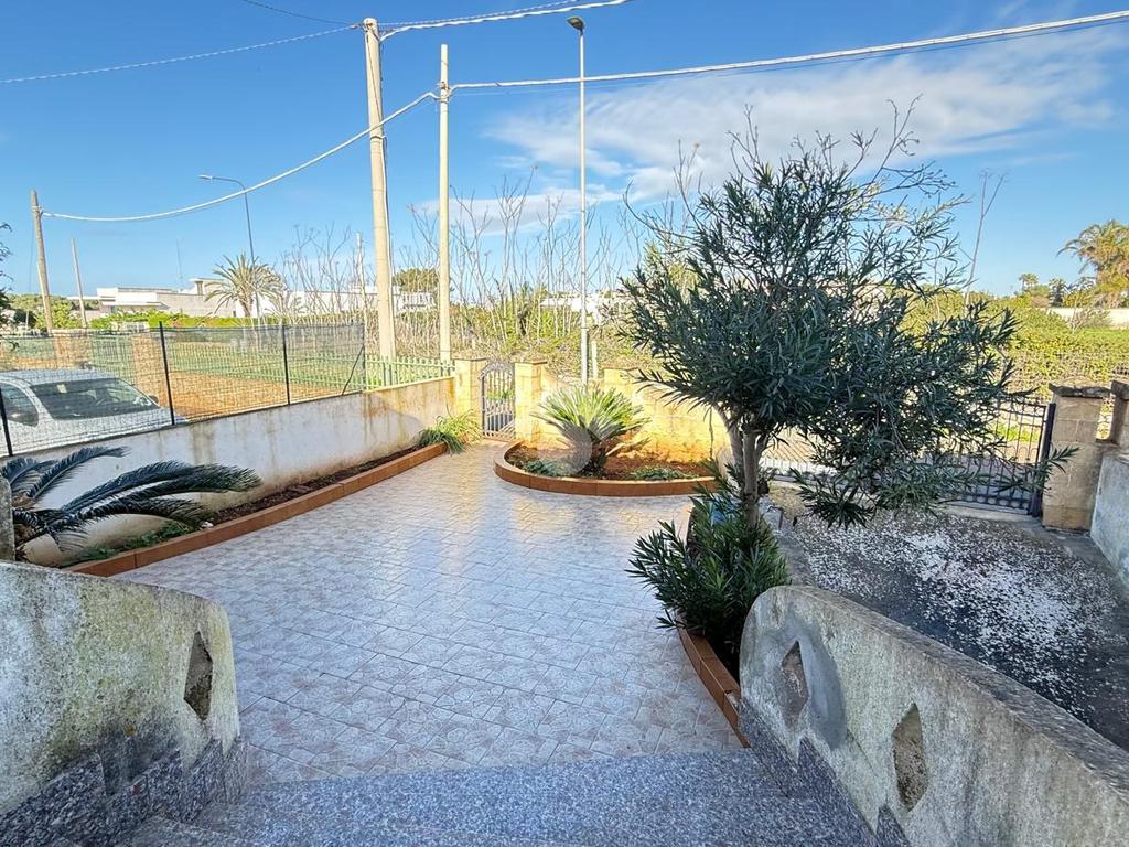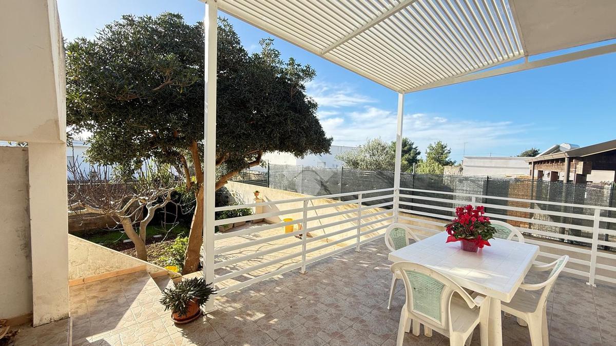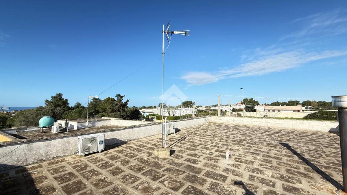 MARINA DI TORRE SUDA: a 280 mt dal mare villa a schiera angolare, con terrazzo e giardino antistante e retrostante e spazio esterno latistante che permette il passaggio nella parte posteriore dall'esterno, composta da ingresso, soggiorno doppio, cucina abitabile, cucinotto e ripostiglio, due camere da letto matrimoniali e un bagno. Scala esterna che porta al lastrico solare con un splendida vista mare. L'immobile recentemente ha subito alcuni lavori di ristrutturazione, come gli infissi, l'arredamento, il bagno che è completamente nuovo, stufa a legna, climatizzatori. Al Piano seminterrato box auto di circa 36mq. E'predisposto anche la tinteggiatura esterna che sarà a carico e cura dei proprietari. La villa viene venduta completamente arredata.