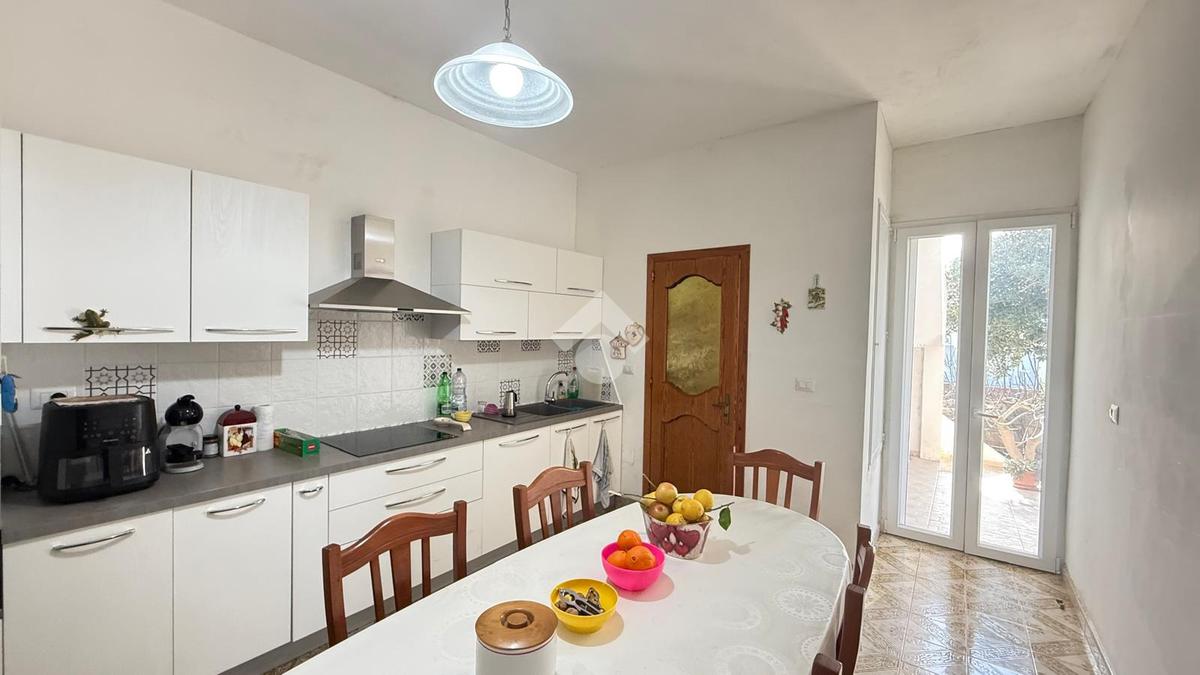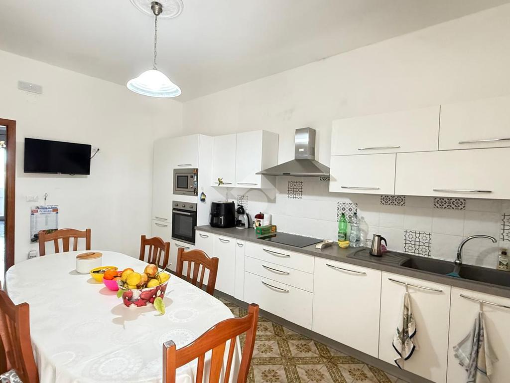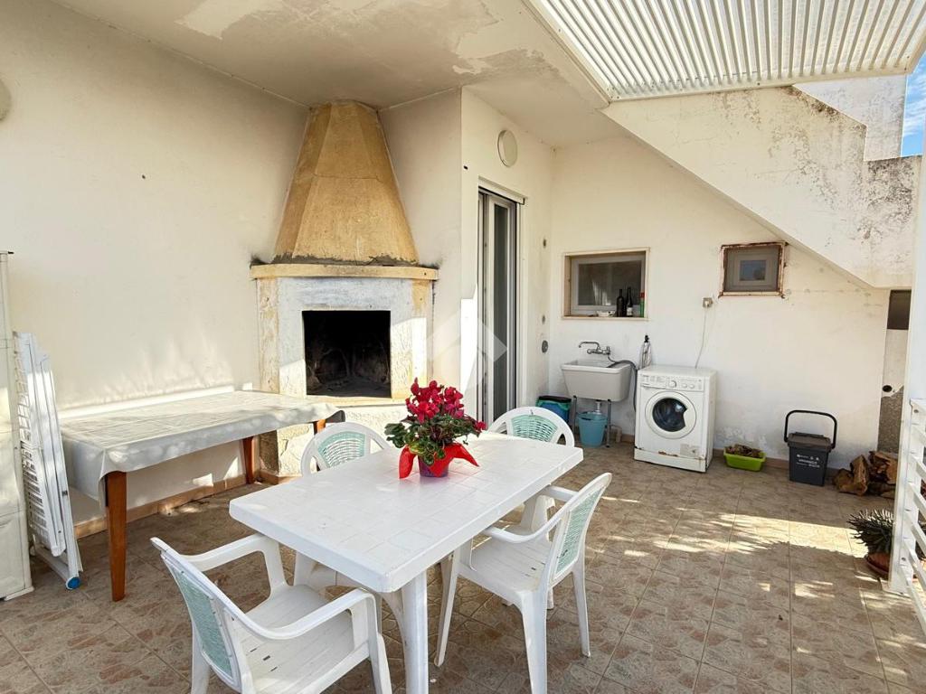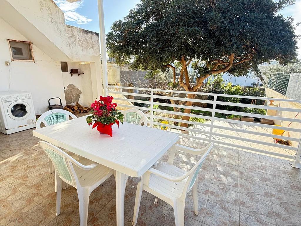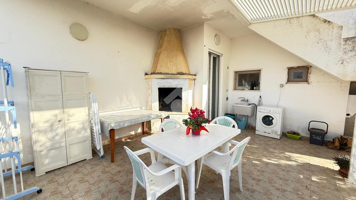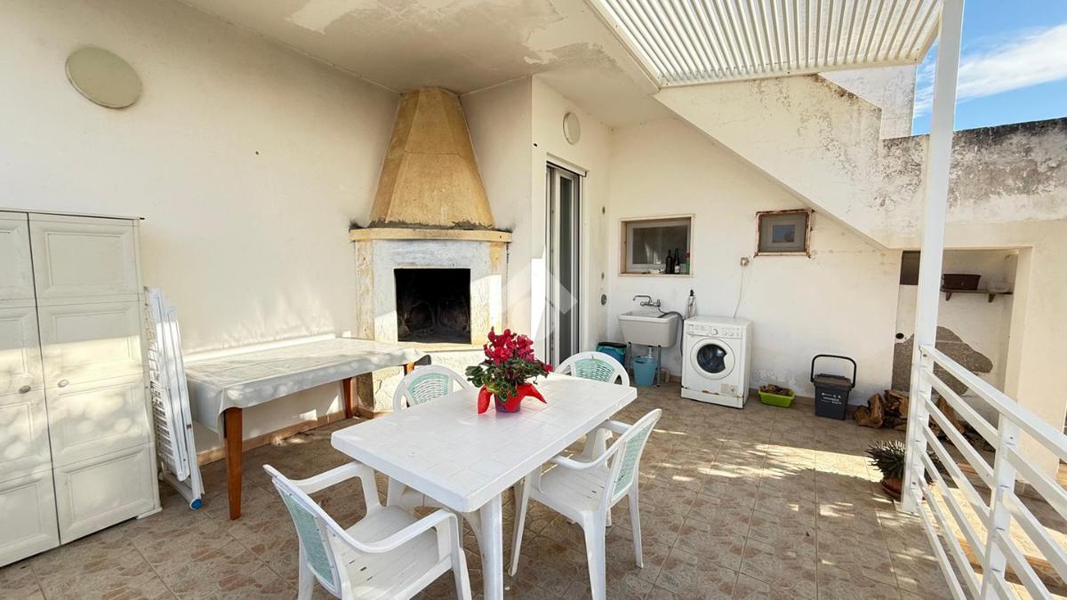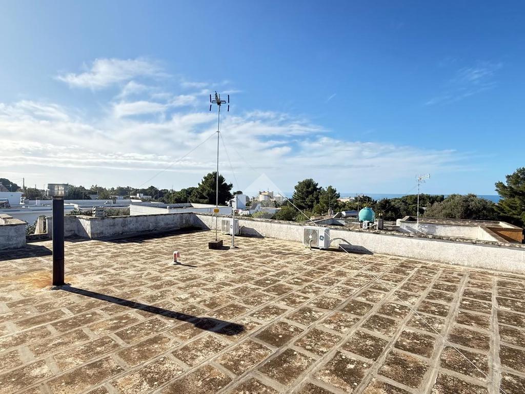 MARINA DI TORRE SUDA: a 280 mt dal mare villa a schiera angolare, con terrazzo e giardino antistante e retrostante e spazio esterno latistante che permette il passaggio nella parte posteriore dall'esterno, composta da ingresso, soggiorno doppio, cucina abitabile, cucinotto e ripostiglio, due camere da letto matrimoniali e un bagno. Scala esterna che porta al lastrico solare con un splendida vista mare. L'immobile recentemente ha subito alcuni lavori di ristrutturazione, come gli infissi, l'arredamento, il bagno che è completamente nuovo, stufa a legna, climatizzatori. Al Piano seminterrato box auto di circa 36mq. E'predisposto anche la tinteggiatura esterna che sarà a carico e cura dei proprietari. La villa viene venduta completamente arredata.