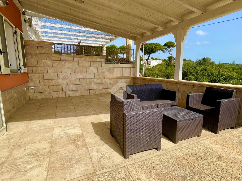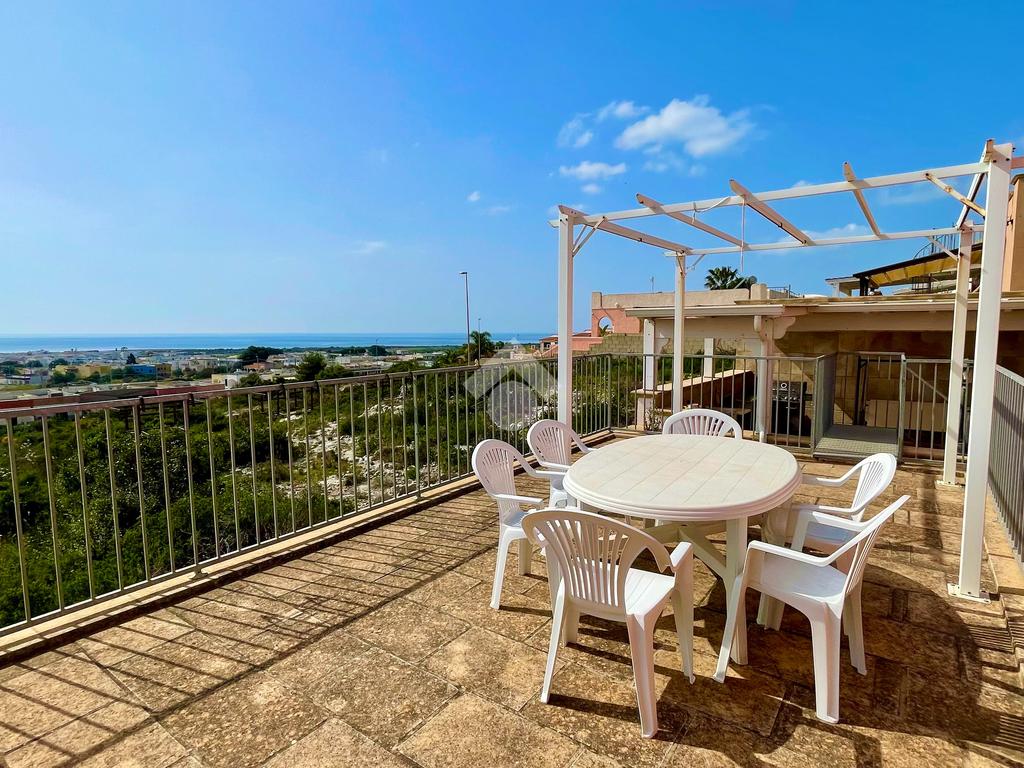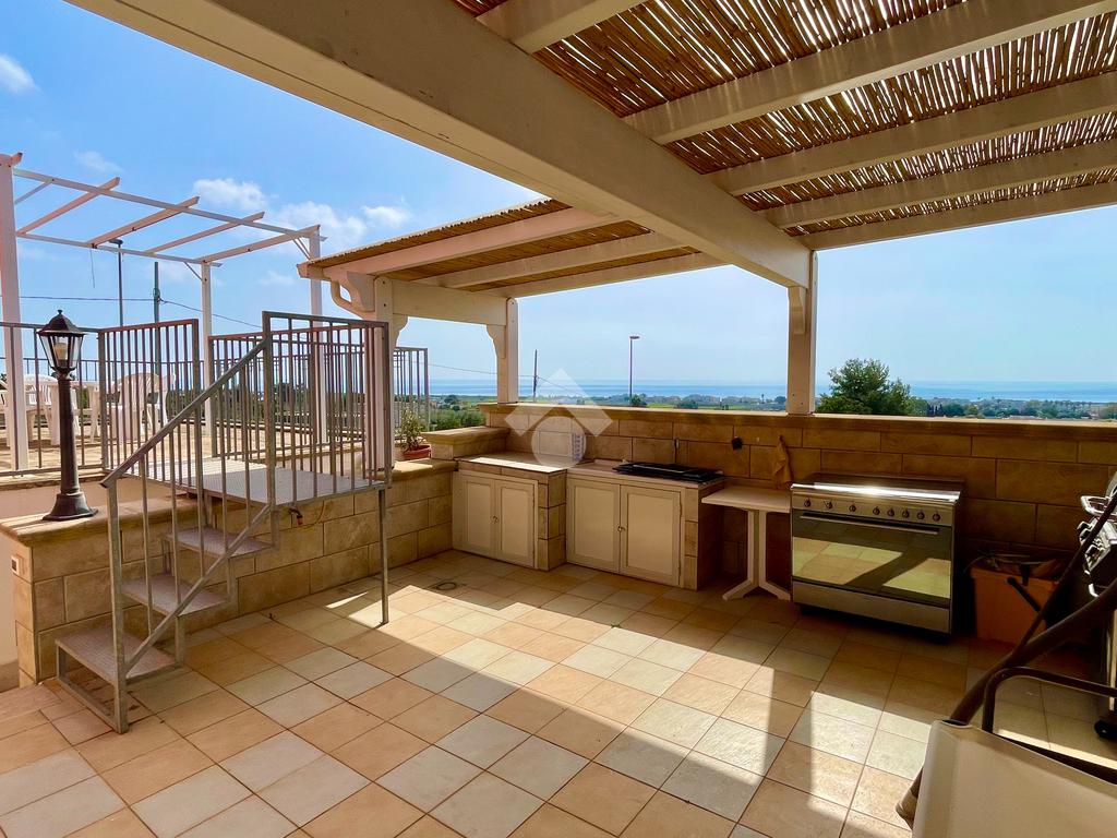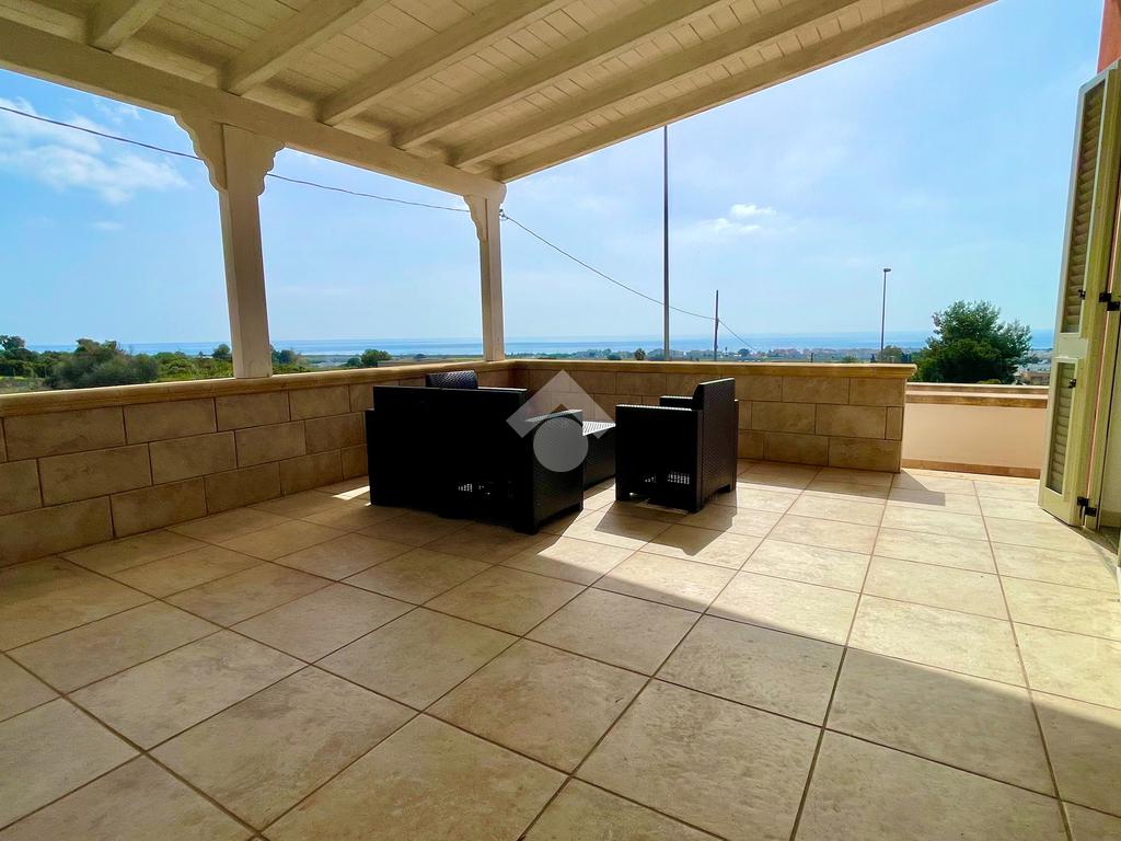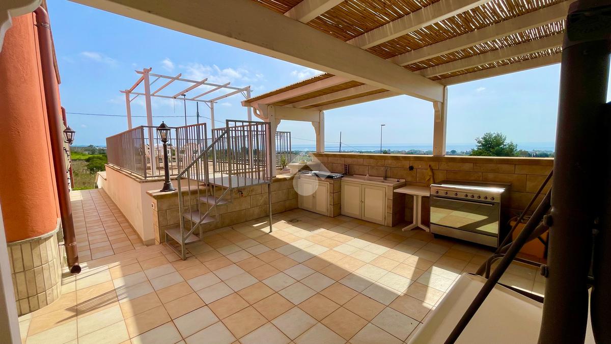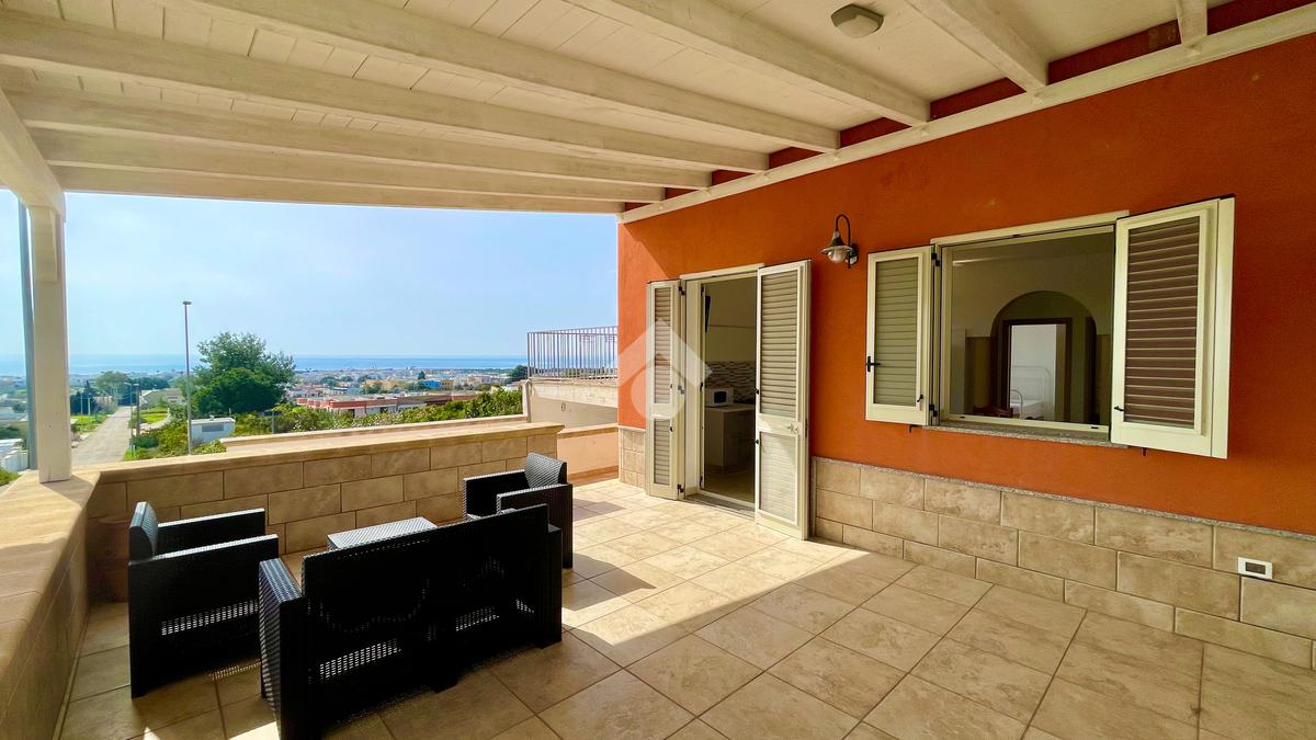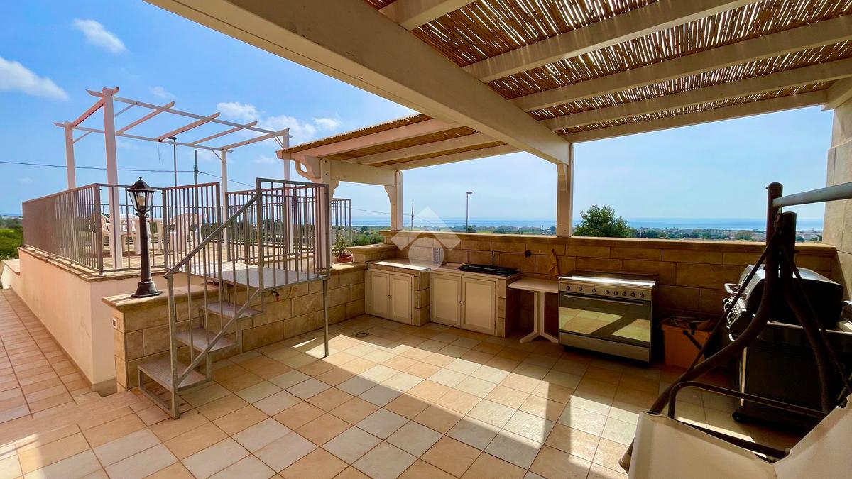 Uno dei punti di forza della casa è rappresentato dagli spazi esterni, che includono una terrazza panoramica e una veranda con vista mare, perfette per momenti di relax all’aperto e per godere del suggestivo panorama.