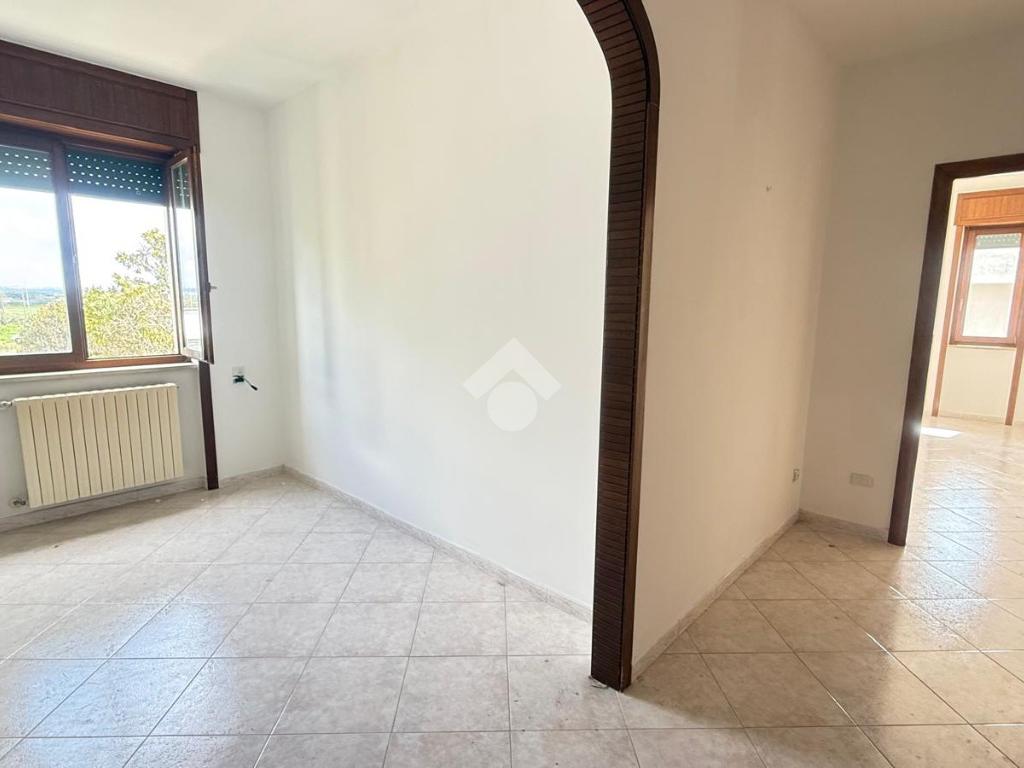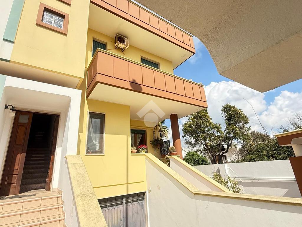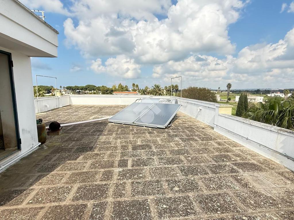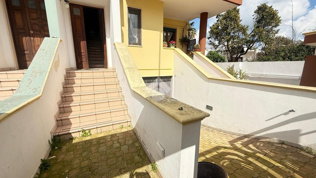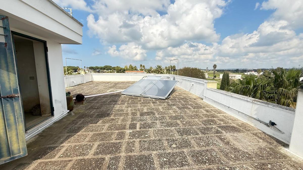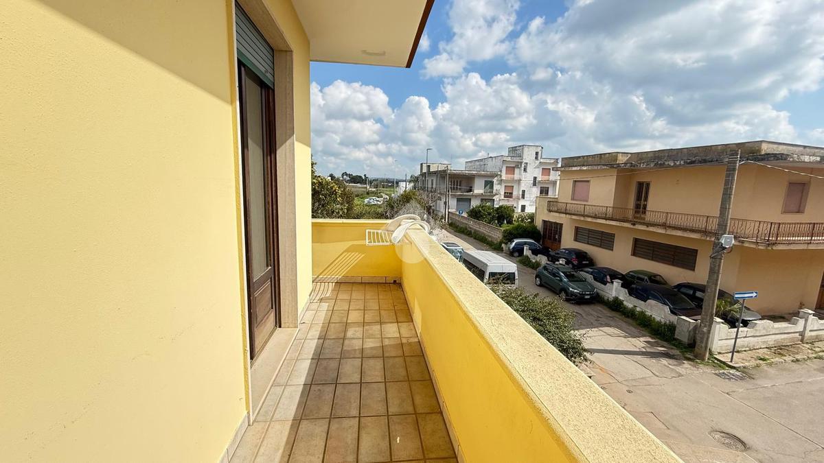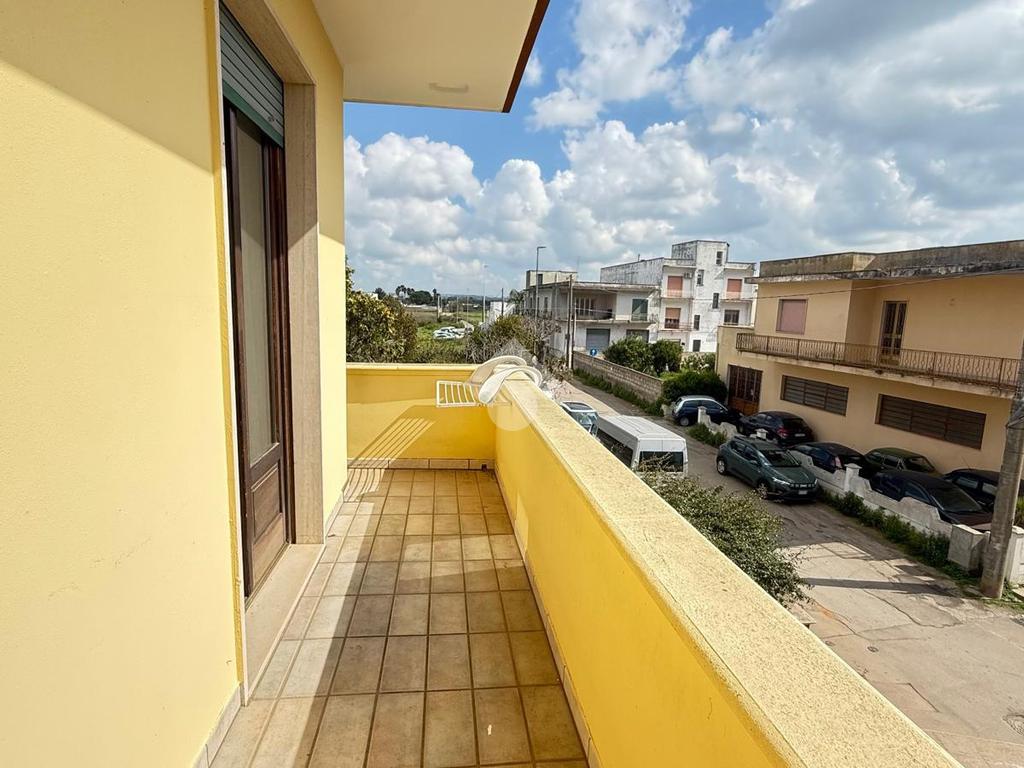 TAVIANO: appartamento indipendente in ottime condizioni al piano primo, composto da ingresso, sala da pranzo con camino, cucinotto, soggiorno, tre camere da letto e due bagni, tre balconi, scala interna dalla quale si accede al lastrico solare di esclusiva proprietà, al piano seminterrato box auto di circa 40mq con ripostiglio. L'appartamento è fornito di pannelli solari, caldaia a metano con impianto di riscaldamento, allaccio fogna e acquedotto.