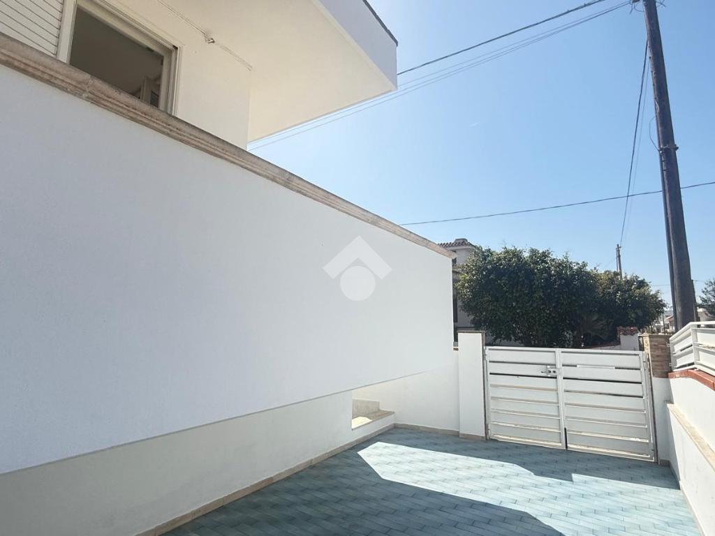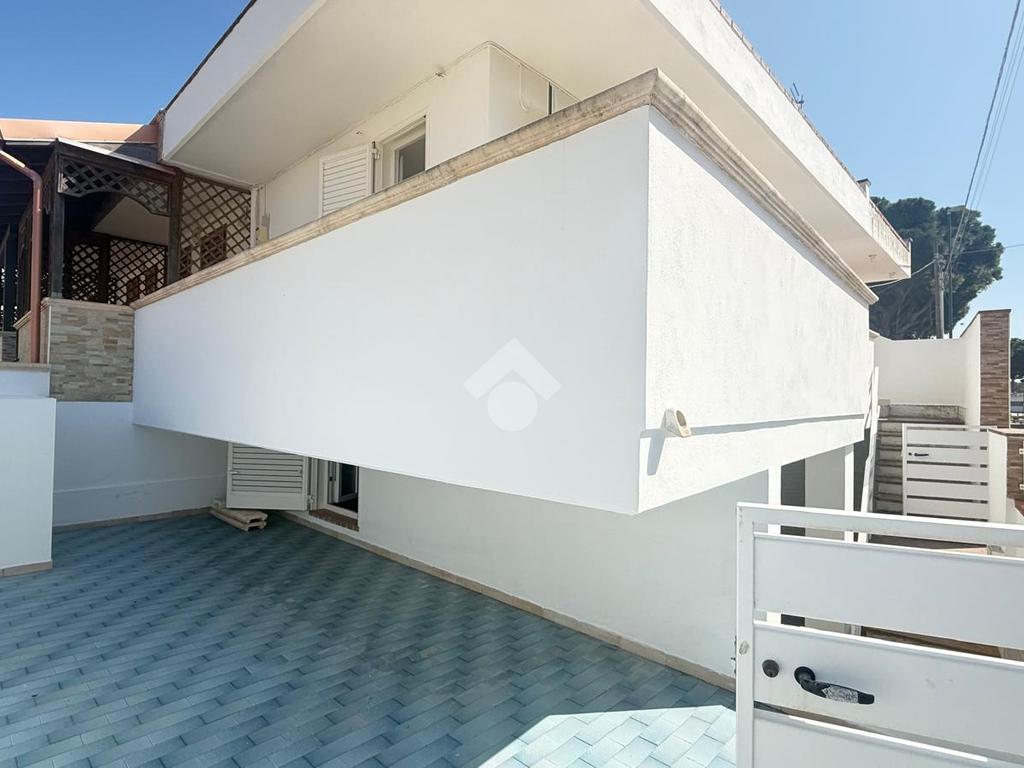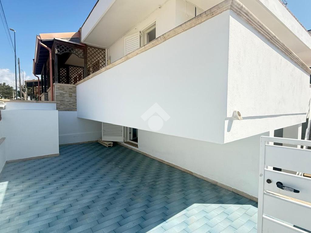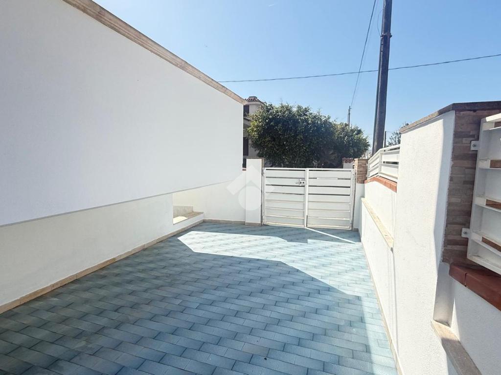 MARINA DI MANCAVERSA: zona Piazzetta delle Rose, villetta a schiera angolare quasi del tutto ristrutturata posta su due livelli, con spazio esterno circostante e posto auto, composta da 3 vani e due bagni, lastrico solare di esclusiva proprietà, già allacciata all'acquedotto.