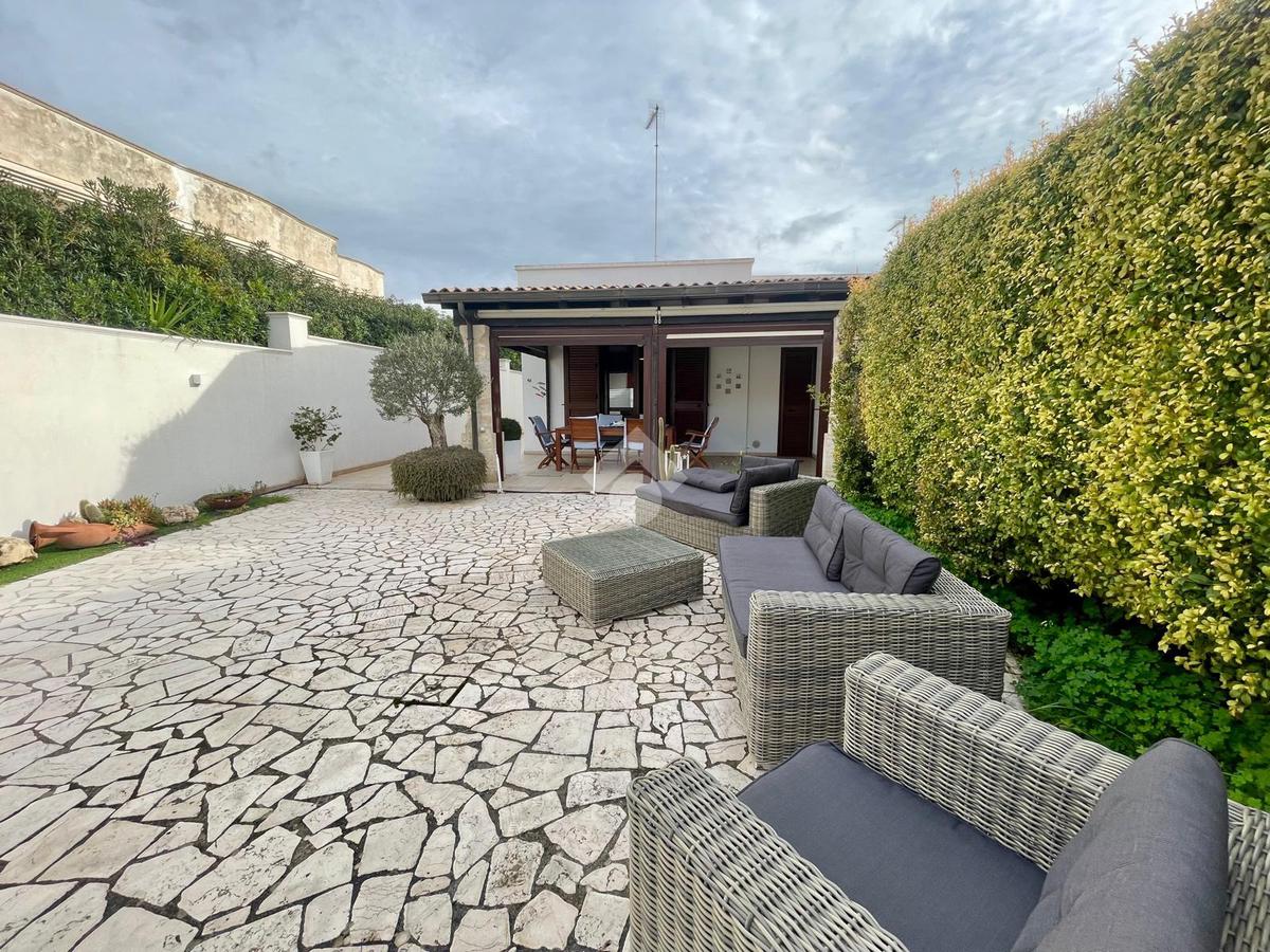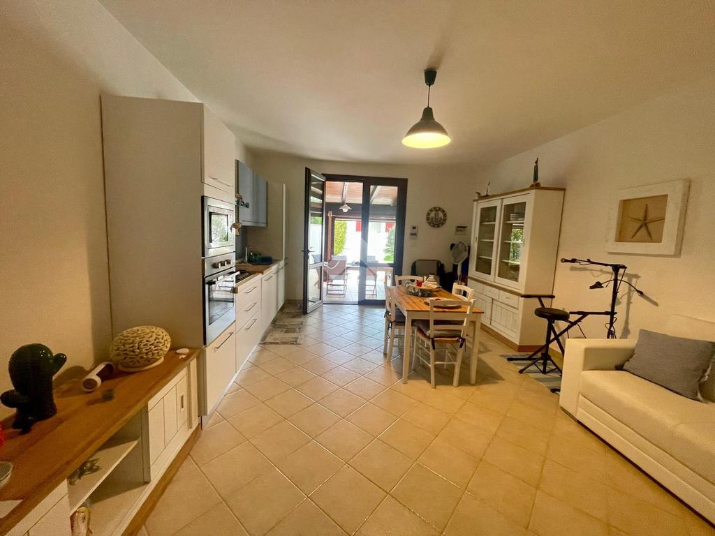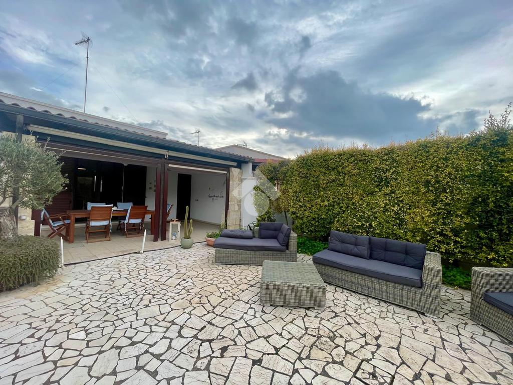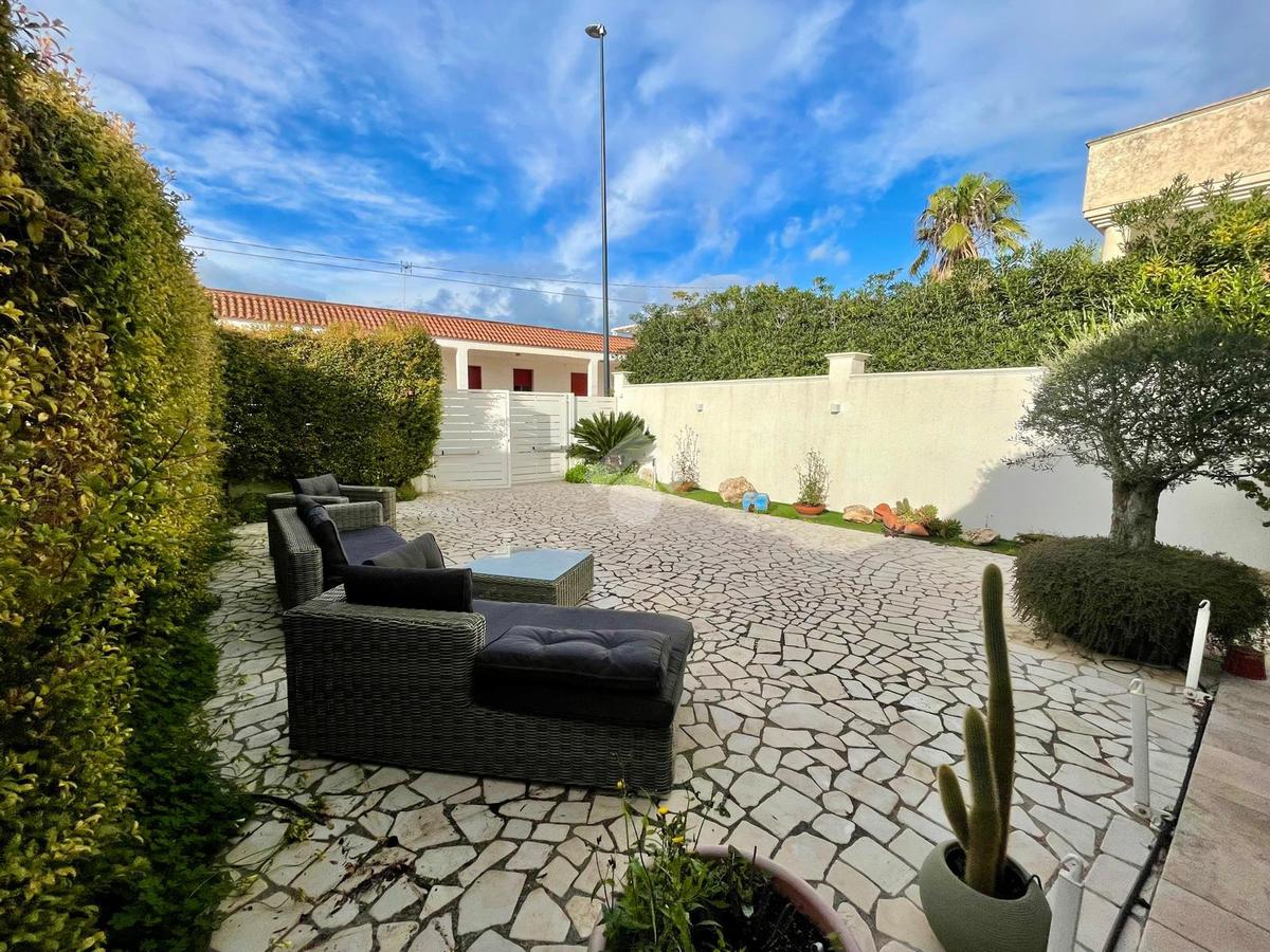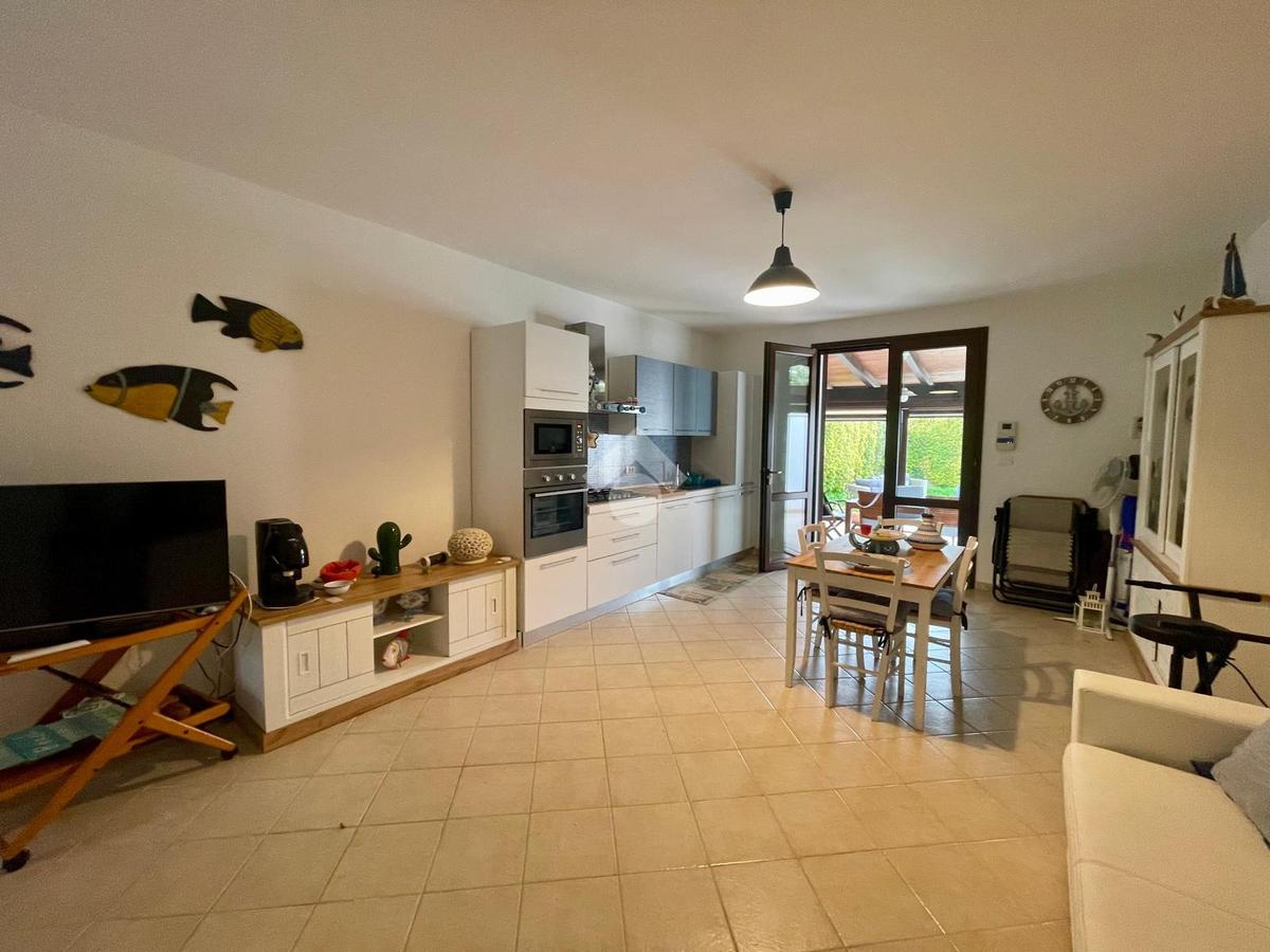 MARINA DI MANCAVERSA: a circa 600 mt dal mare, splendida villa a schiera angolare, di recente costruzione, completa di tutti i comfort, composta da soggiorno pranzo con angolo cottura, due camere da letto matrimoniali e un bagno. Nella parte esterna, ampio giardino con impianto di irrigazione, impianto di allarme e videocamere, i muri perimentrali molti alti permettono di avere riservatezza e privacy a 360gradi, portico esterno con tende laterali che permette l'utilizzo anche nelle giornate di pioggia e ventose, ripostiglio esterno e bagnetto di servizio completo di doccia. Climatizzata e con pannelli solari. La villa viene venduta completa di tutto l'arredo interno ed esterno pronta da subito per essere abitata.