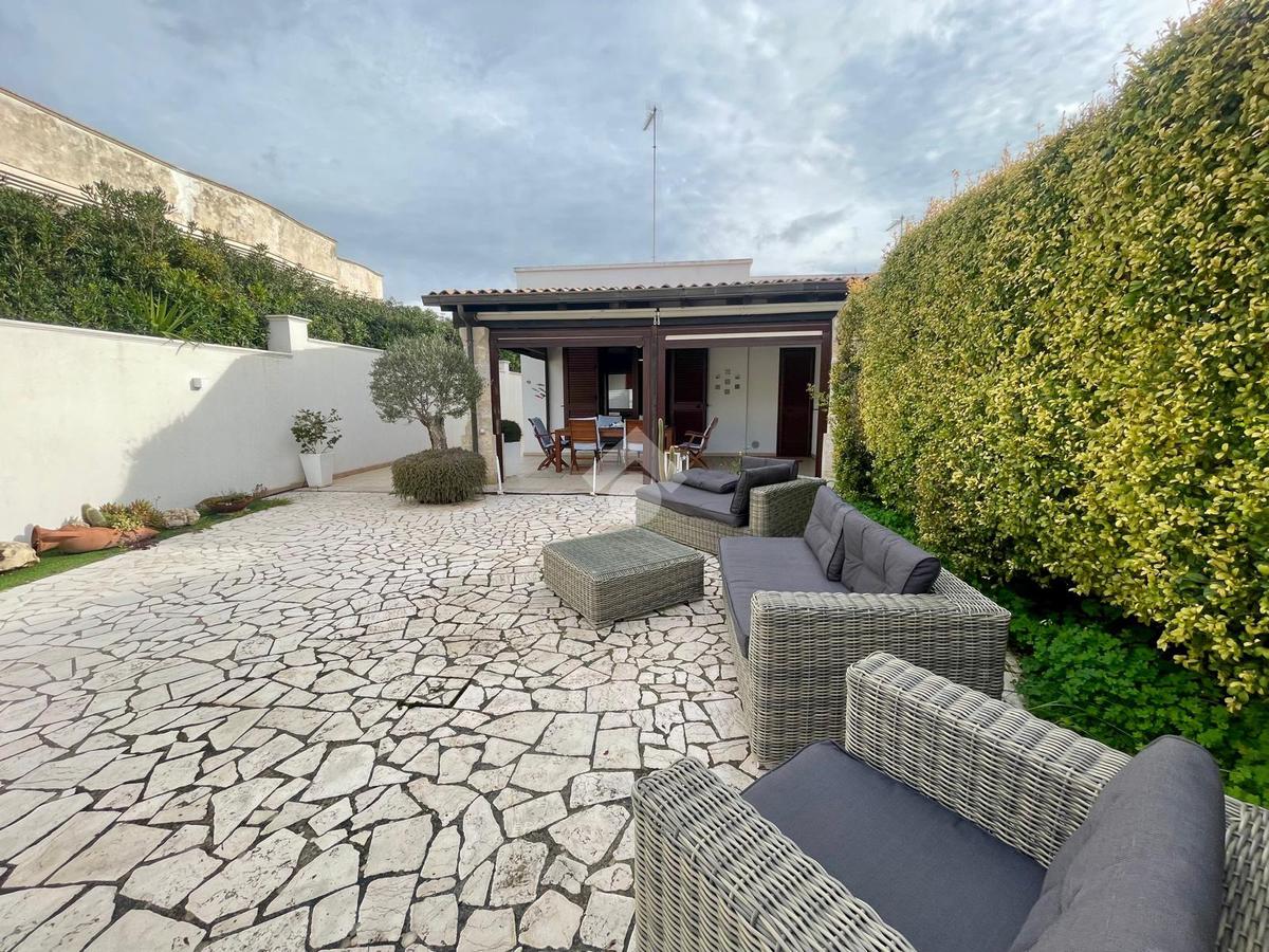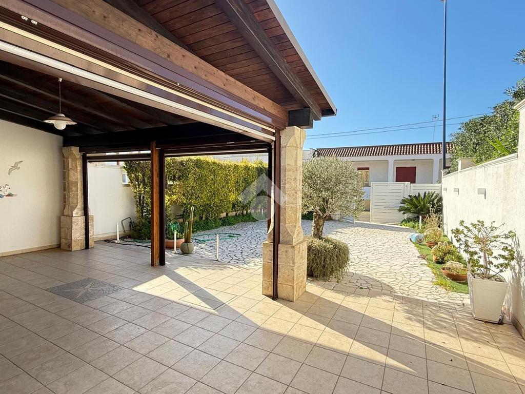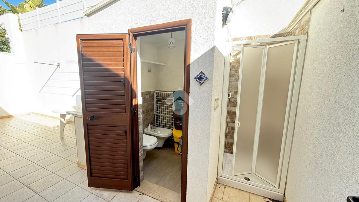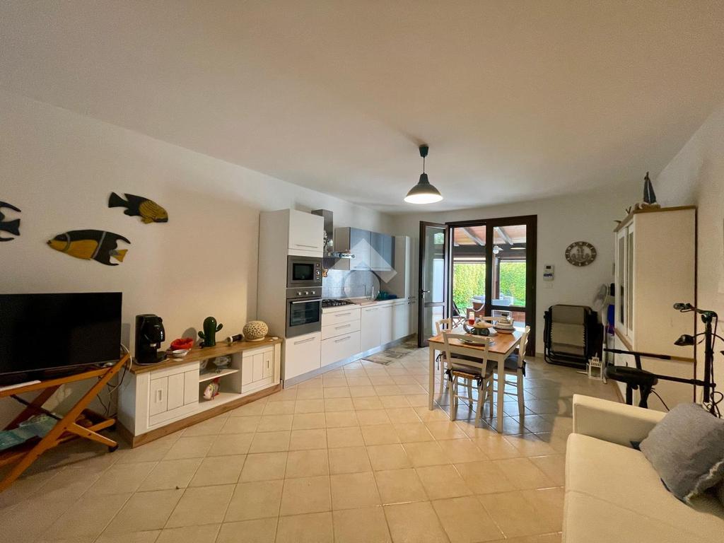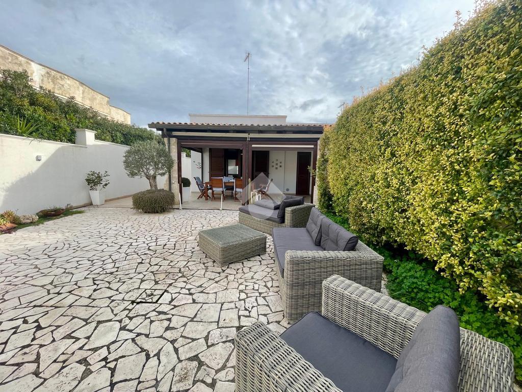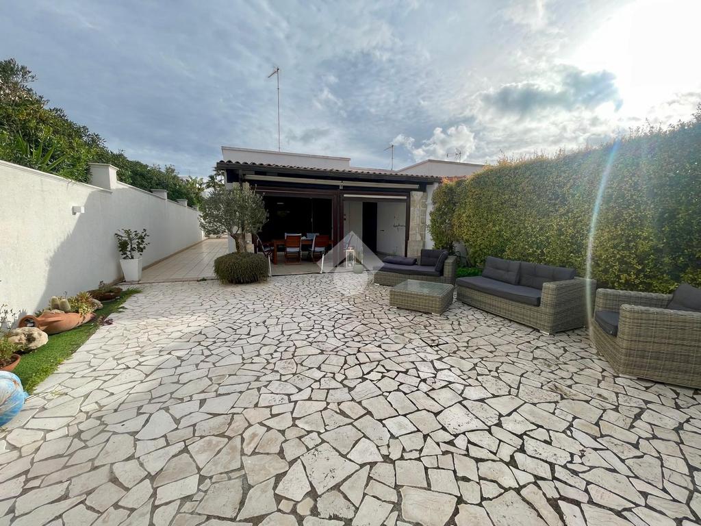 MARINA DI MANCAVERSA: a circa 600 mt dal mare, splendida villa a schiera angolare, di recente costruzione, completa di tutti i comfort, composta da soggiorno pranzo con angolo cottura, due camere da letto matrimoniali e un bagno. Nella parte esterna, ampio giardino con impianto di irrigazione, impianto di allarme e videocamere, i muri perimentrali molti alti permettono di avere riservatezza e privacy a 360gradi, portico esterno con tende laterali che permette l'utilizzo anche nelle giornate di pioggia e ventose, ripostiglio esterno e bagnetto di servizio completo di doccia. Climatizzata e con pannelli solari. La villa viene venduta completa di tutto l'arredo interno ed esterno pronta da subito per essere abitata.