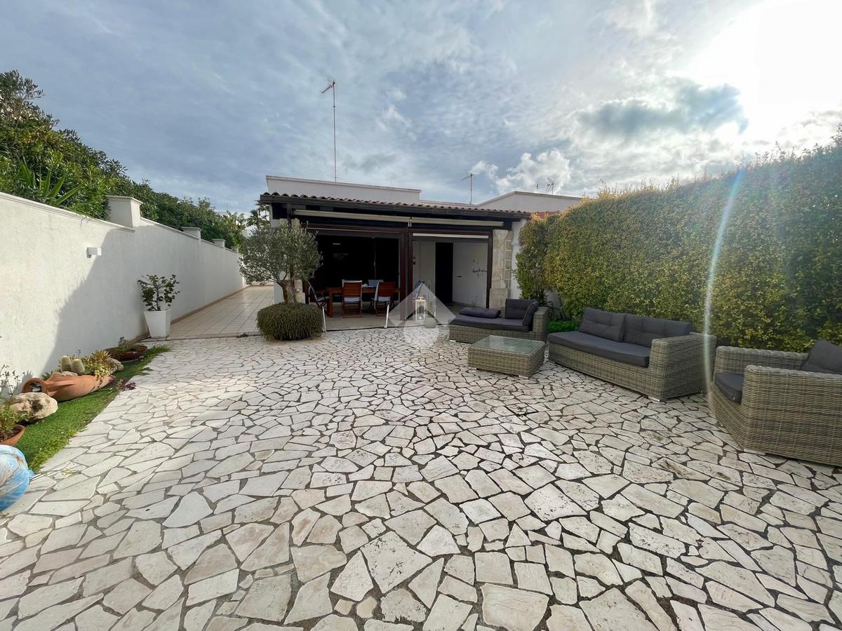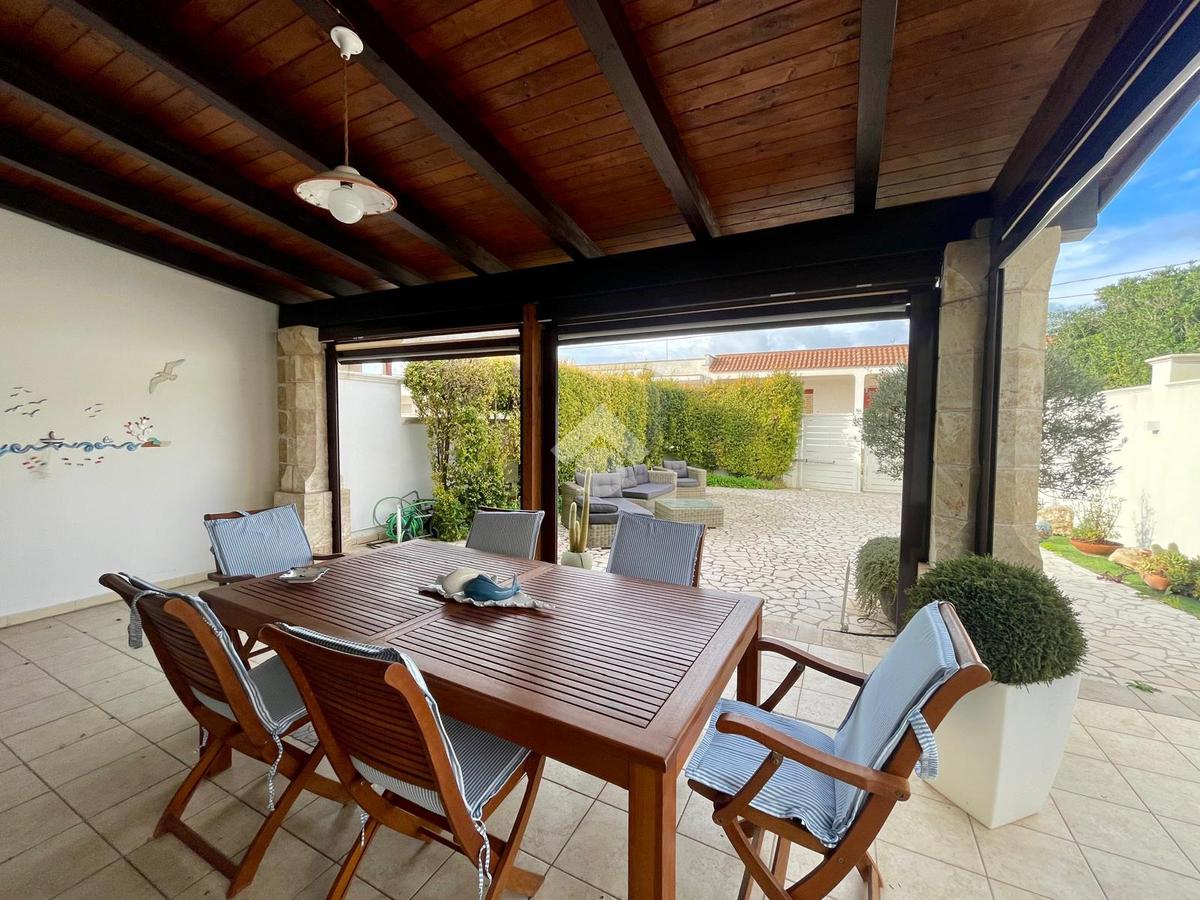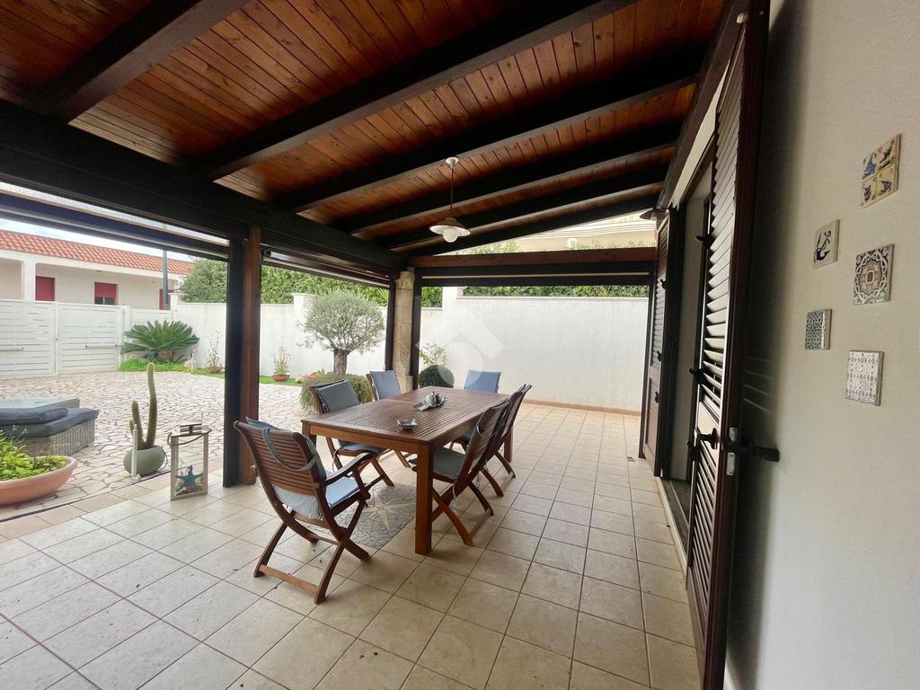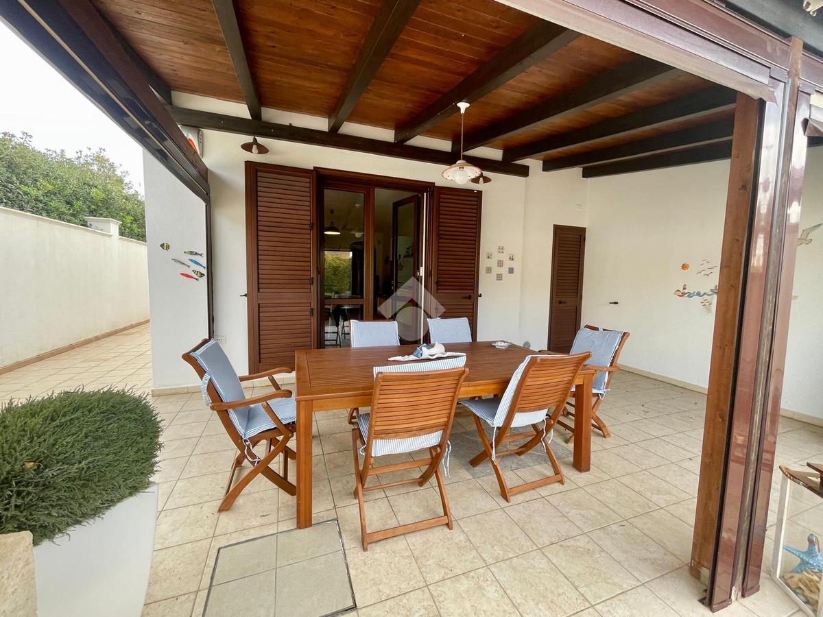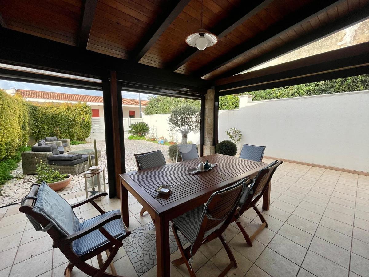 MARINA DI MANCAVERSA: a circa 600 mt dal mare, splendida villa a schiera angolare, di recente costruzione, completa di tutti i comfort, composta da soggiorno pranzo con angolo cottura, due camere da letto matrimoniali e un bagno. Nella parte esterna, ampio giardino con impianto di irrigazione, impianto di allarme e videocamere, i muri perimentrali molti alti permettono di avere riservatezza e privacy a 360gradi, portico esterno con tende laterali che permette l'utilizzo anche nelle giornate di pioggia e ventose, ripostiglio esterno e bagnetto di servizio completo di doccia. Climatizzata e con pannelli solari. La villa viene venduta completa di tutto l'arredo interno ed esterno pronta da subito per essere abitata.