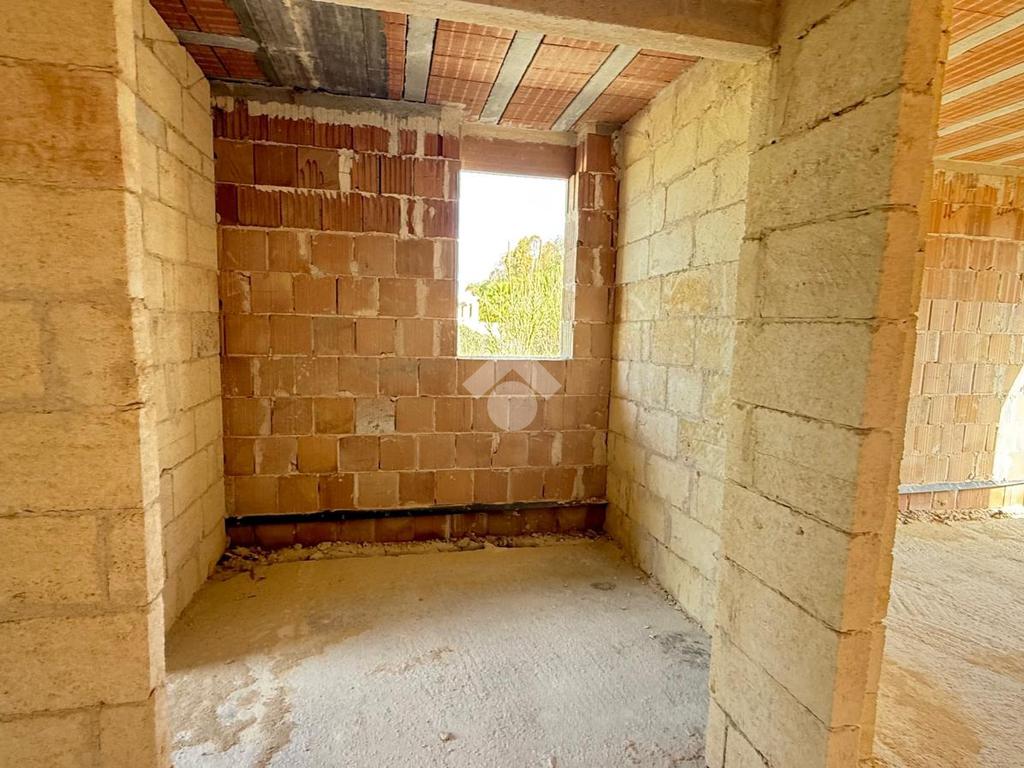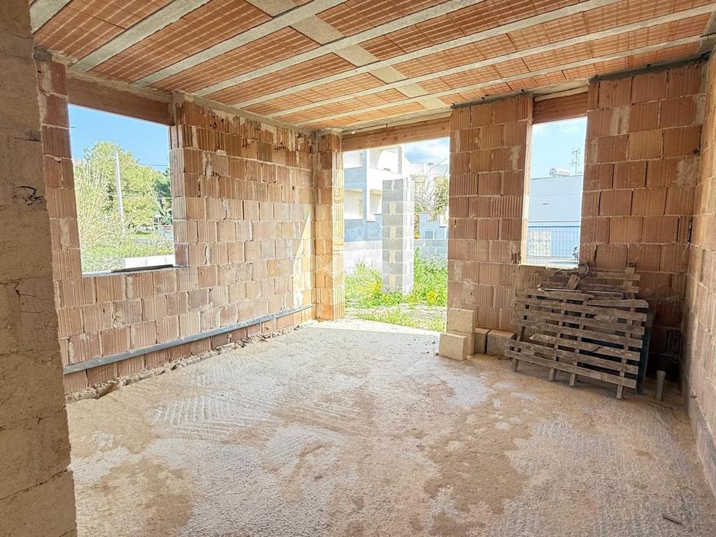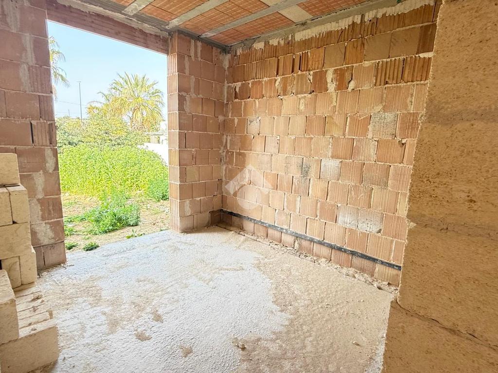 MARINA DI MANCAVERSA: villa a schiera angolare allo stato rustico composta da soggiorno pranzo con angolo cottura, un bagno, due camere da letto, spazio esterno antistante e latistante e giardino retrostante, lastrico solare di esclusiva proprietà.