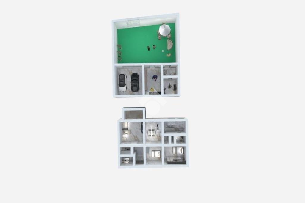 Al piano sottostante accessibile sia da una comoda scala interna e sia da un accesso indipendente troviamo tre vani adibiti a soggiorno con volta a botte a vista, camera da letto, disimpegno e bagno. Completa il tutto un ampio giardino di circa 250 mq, un garage di circa 30 mq e lastrico solare di esclusiva proprietà con splendida vista panoramica.