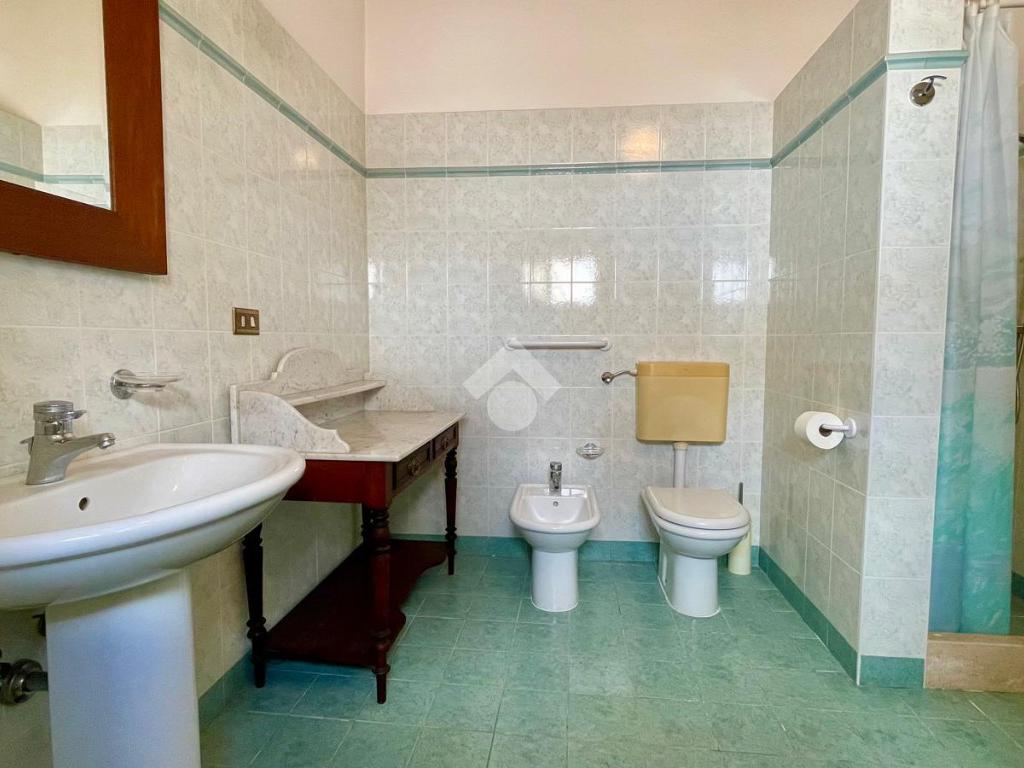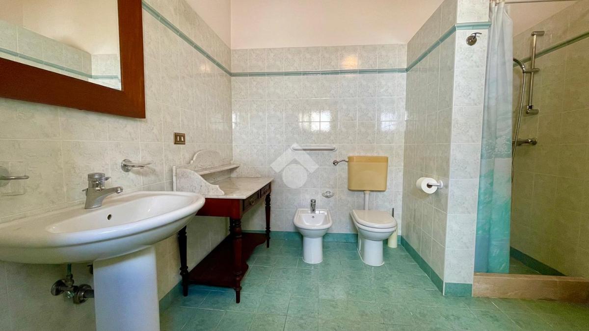 L' abitazione principale posta a piano terra è composta da ampio ingresso, salotto di circa 30 mq con affaccio su terrazzino a livello, cucina abitabile, lavanderia, due camere da letto matrimoniali e tre bagni di cui uno in camera.
